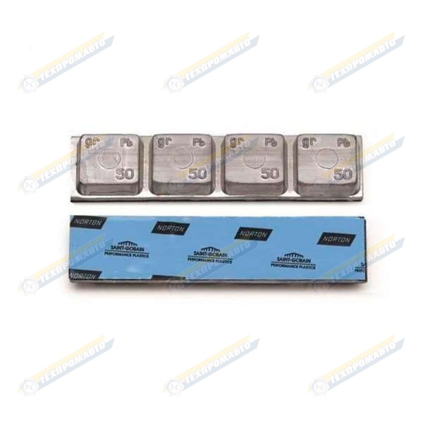 Тонкие свинцовые самоклеющиеся грузики с двусторонним скотчем на полиуретановой основе с пленкой синего цвета с логотипом NORTON/NORBOND™ для грузовых колес.