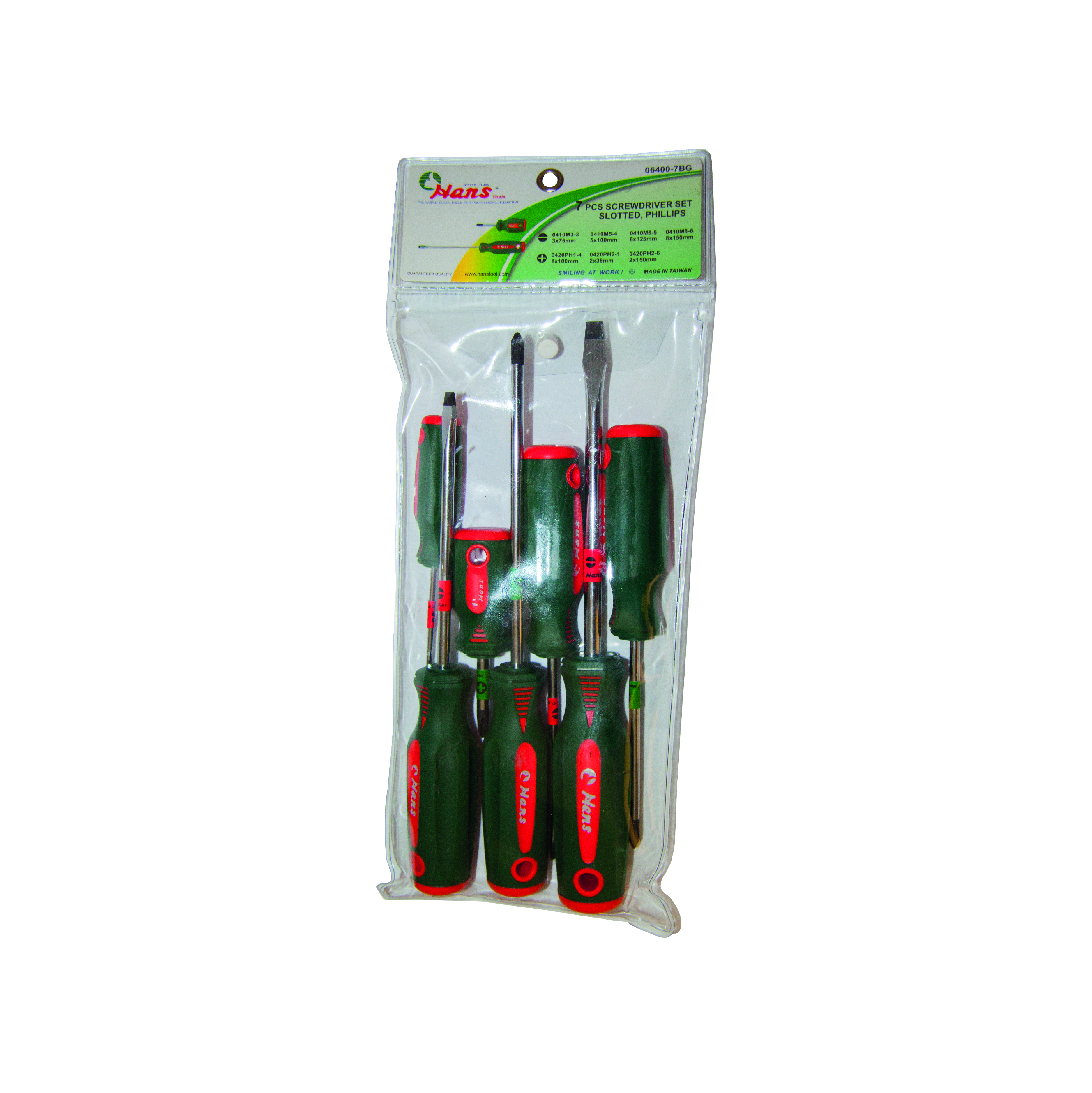 Набор отверток 7 предметов. Отвертка шлицевая 0410 : М3-3 3х75мм , М5-4 5х100мм, М6-5 6х125мм, М8-6 8х150мм Отвертка Philips 0420: РН1-4 1х100мм, РН2-1 2х38мм, РН2-6 2х150мм