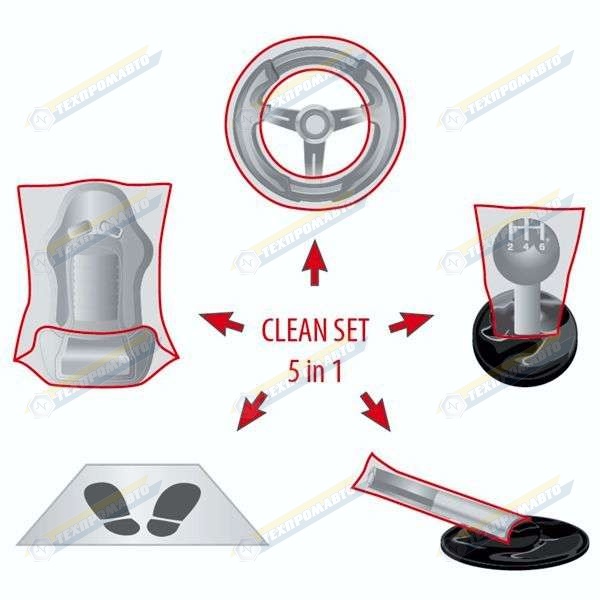 Одноразовые чехлы предназначены для защиты от загрязнений сидения, рулевого колеса, коврика, рукоятки стояночного тормоза и рукоятки переключения коробки передач при обслуживании автомобиля