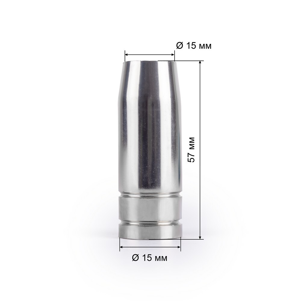 Коническое сопло MIG-25 с выходным внутренним диаметром 15 мм относится к основным частям сварочной горелки. Оно изготовлено из прочного сплава и имеет наружное гальваническое покрытие. Сопло предназначено для подачи защитного газа к месту сварки. Это позволяет исключить риск образования окислов в сварном шве, поскольку поток газа защищает ванну расплавленного металла от попадания окружающего воздуха. Несмотря на высокую прочность изделия, оно требует особого ухода и защиты от брызг расплавленного металла. Для этого стоит использовать специальный сварочный спрей.
