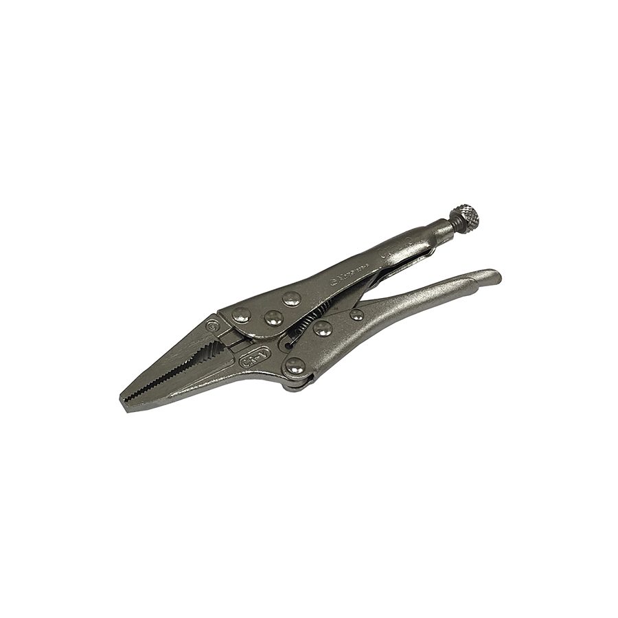 Универсальный тонконосый зажим · Используется для фиксации изделий при сварочных работах, работе с крепежом, обжатии шлангов · Механизм фиксации удерживает зажим в нужном положении, оставляя руки свободными Максимальное открытие зева(мм)=15 L(мм)=162 Вес(гр)=179