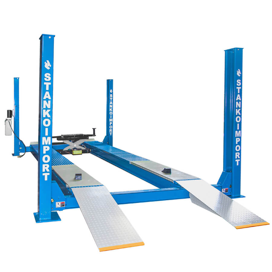 body{margin:0;padding:8px;} p{line-height:1.5;margin:0;white-space:pre-wrap;} ol,ul{margin-top:0;margin-bottom:0;} img{border:none;} li>p{display:inline;} table.blueTable {background-color: #EEEEEE; width: 100%; text-align: left; border-collapse: collapse;} table.blueTable td, table.blueTable th {border: 0px solid #AAAAAA; padding: 2px 2px;} table.blueTable tbody td {font-size: 13px;} table.blueTable tr:nth-child(even) {background: #FFFFFF;} table.blueTable tfoot td {font-size: 14px;} table.blueTable tfoot .links {text-align: right;} table.blueTable tfoot .links a{display: inline-block;background: #1C6EA4;color: #FFFFFF;padding: 2px 8px; border-radius: 5px;} Назначение: Электрогидравлический подъемник «Станкоимпорт» ПГ4-5.5 (У) предназначен для подъема коммерческого транспорта на определенную высоту с целью их ремонта и обслуживания. Используется в автосервисах, автомастерских. Особенности: Подъемник подходит для всех типов сход-развала. Возможно регулировать расстояния между платформами. Пневматические стопора удобны в управлении и долговечны. Нейлоновые накладки на заездных трапах не портят напольное покрытие. Траверса на 3.2 тонны. Подъемник подходит для работы с малым коммерческим транспортом с длиной колесной базы до 4500 мм и бронированными авто Технические характеристики: Грузоподъемность 5500 кг Общая длина 7030 мм Электропитание 380В Общая ширина 3311 мм Объем бака гидронасоса 12 л. Длинна платформы 5770 мм Время подъема/опускания 60 сек./30 сек Ширина платформы 510 мм Расстояние между колонн 2895 мм Расстояние между платформами 1000-1100 мм Длина трапов 1200 мм Высота подъема мин/макс 241/1848 мм Траверса: Грузоподъемность 3200 кг Колея траверсы (регулируется) 1000-1120 мм Высота подъема 225-535 мм Диапазон длины подхватов (регулируется) 795-1440 мм Комплектация: Траверса на 3,2 тонны Проставки под рамные автомобили 150мм 2 шт 50 мм 2шт Анкерные болты 16 шт 18х180мм Блок подготовки воздуха для пневматических стопоров Управление траверсой от пневмонасоса Упаковка: Место №1 Траверса Место №2 Подъемник Вес, кг 150 1820 Длина, мм 1030 5900 Ширина, мм 500 600 Высота, мм 350 850
