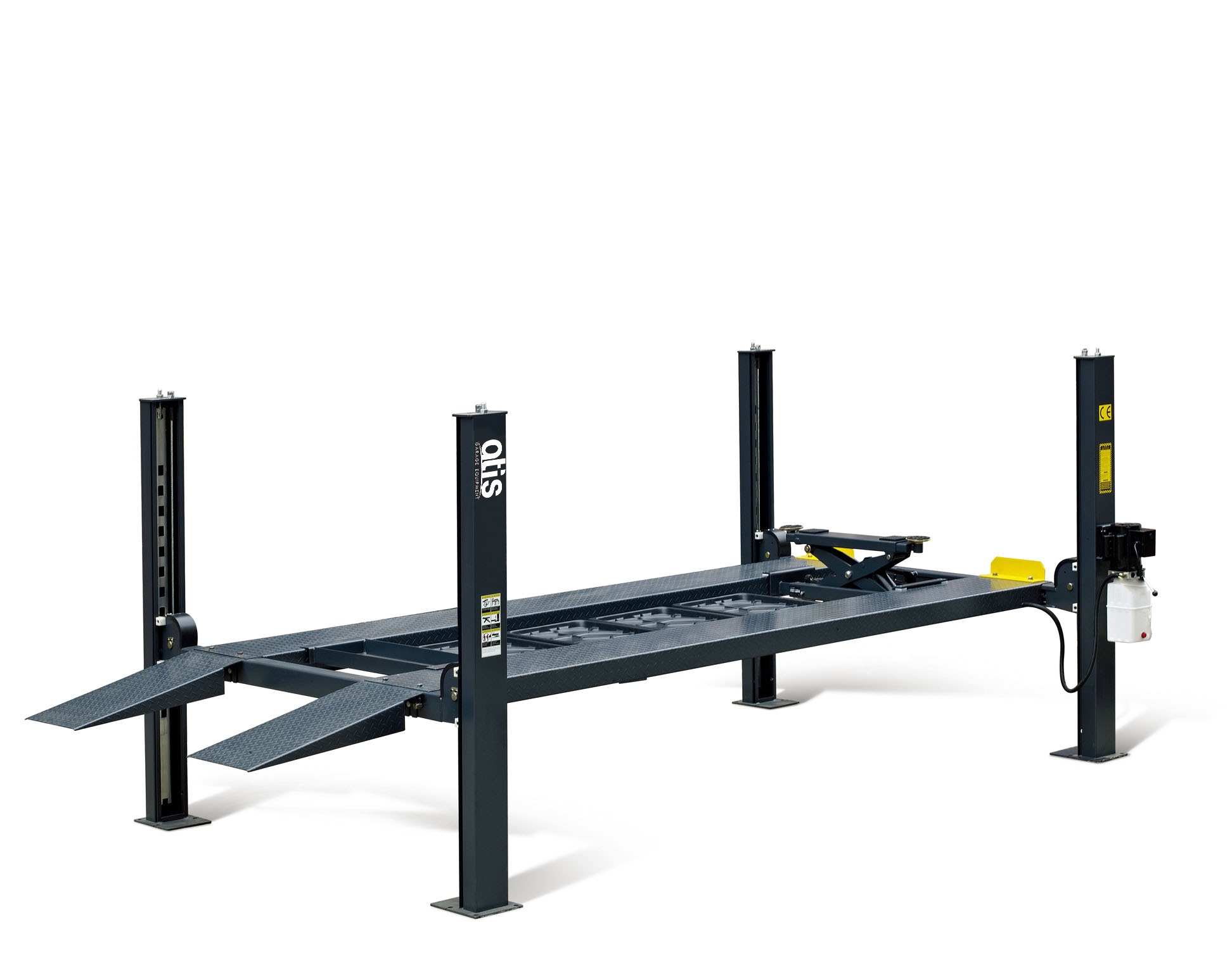 - Автоматические замки безопасности, расположенные с 4х сторон платформы и на каждой стойке подъемника;