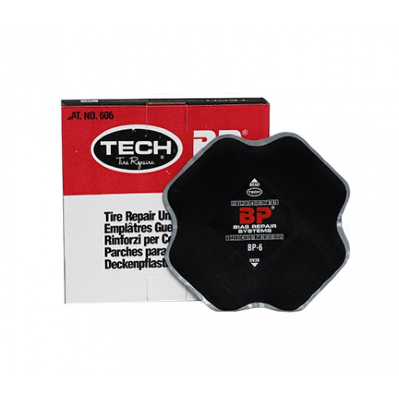 Диагональная заплата BP артикул 605BK подходит для ремонта повреждений в области протектора, в плечевой зоне и боковине, в камерных и бескамерных шинах с диагональным направлением корда, где каркас состоит из одной или нескольких пар слоев корда, расположенных так, что нити соседних слоев перекрещиваются. Диагональная заплата BP-5 имеет прослойку резины между кордом и серым адгезивным слоем резины, которая способствует смягчению удара. Конструкция заплаты позволяет устанавливать ее близко к борту, устраняя необходимость в установке отдельного пластыря на боковой стенке шины. Заплата ВP-5 прекрасно держит давление воздуха в бескамерных шинах.