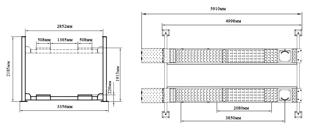 - Конструкция подъемника рассчитана для работы с 3D сход-развалом (Hunter, Hofmann, Техно Вектор, АМД и другие)