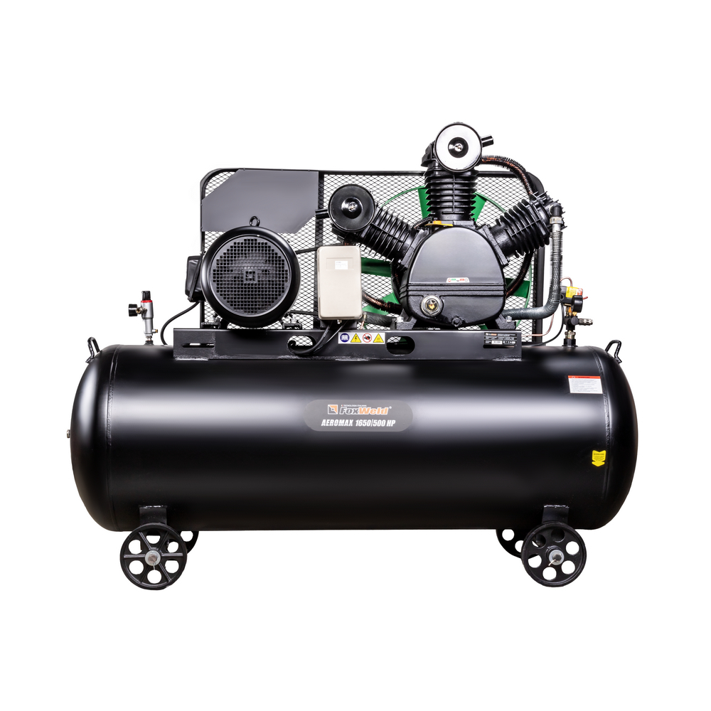 AEROMAX 1650/500 HP - воздушный трёхпоршневой двухступенчатый масляный компрессор с ременным приводом. Профессиональная модель с максимальным рабочим давлением в 12,5 бар и производительностью 1650 л/мин, оснащенная вместительным ресивером объемом 500 л. AEROMAX 1650/500 HP подходит для применения на станциях технического обслуживания и автомастерских, в производственных цехах мастерских и предприятий, для работы с производительным пневмоинструментом и оборудованием при осуществлении строительных работ, для пескоструйной обработки, покраски, сварочных работ, например, в сочетании с аппаратами для плазменной резки и т.п. Компрессор также может быть размещен на рабочем объекте для последующего подключения к существующей производственной пневмосети. Данная модель оснащена 4 быстросъемными выходами. Безопасность работы обеспечивает автоматическое реле давления с манометром и аварийный (перепускной) клапан сброса давления. Ременная передача и шкивы закрыты решеткой, предотвращающей ее повреждение, а также травмирование пользователя в случае обрыва ремня. Четыре колеса обеспечивают возможность перемещения устройства. Ресивер имеет сливной кран для конденсата и качественное покрытие, препятствующее образованию коррозии.МАКСИМАЛЬНОЕ ДАВЛЕНИЕ: Профессиональная модель с максимальным рабочим давлением в 12,5 бар и производительностью 1650 л/мин оснащена вместительным ресивером объёмом 500 л, мощным трёхфазным асинхронным электродвигателем 15 кВт и трёхпоршневой компрессорной головкой с двухступенчатой системой сжатия.ДО 4 РАБОЧИХ МЕСТ: Данная модель оснащена 4 быстросъёмными выходами, что позволяет подключить к компрессору 4 пневмоинструмента одновременно.РЕГУЛЯТОР ДАВЛЕНИЯ С ОСУШИТЕЛЕМ: Для подключения чувствительного к влаге и маслу инструмента, например, краскопультов, для двух быстросъёмных выходов в компрессоре предусмотрено наличие интегрированного фильтра-осушителя с регулировкой давления.НИЗКИЙ УРОВЕНЬ ШУМА: Данный компрессор отличается низким уровнем шума, что обеспечивает комфортную работу в любое время дня без помех для окружающих.ПРЕИМУЩЕСТВА:Сеть – 400 ВВерсия HP с максимальным рабочим давлением 12,5 барВысокая производительность на входе 1650 л/минВысокопроизводительная компрессорная головка с двухступенчатым нагнетателем4 быстросъемных выходаБольшой объем ресивера – 500 лИнтегрированный фильтр-осушитель с регулировкой давленияОдновременное подключение до 4-х пневмоинструментовУлучшенная поршневая группаДругие настройки реле, манометра, защитного клапана давленияБезопасность и простота обслуживанияНадежность и высокий ресурсДля всех видов профессиональных работ2 основных выхода «Rapid F»2 дополнительных рабочих выхода «Rapid F» с влагоотделителем, регулятором давления и манометромПрочный защитный кожух ременного приводаЭффективные воздушные фильтры с двухступенчатой очисткойНизкий уровень шумаПростое обслуживаниеУдобный сливной кранКОМПЛЕКТАЦИЯ:AEROMAX Компрессор ременной 1650/500 HP – 1 шт.;Колёса с комплектом для крепления – 4 шт.;Воздушный фильтр – 2 шт.;Масло в бутылке – 1 шт.;Кран шаровый 1/2"M – 1/2"F – 1 шт.;Инструкция по эксплуатации + Гарантийный талон – 1 компл.*Производитель оставляет за собой право менять комплектацию оборудования.