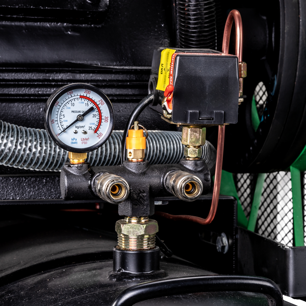 AEROMAX 1650/500 HP - воздушный трёхпоршневой двухступенчатый масляный компрессор с ременным приводом. Профессиональная модель с максимальным рабочим давлением в 12,5 бар и производительностью 1650 л/мин, оснащенная вместительным ресивером объемом 500 л. AEROMAX 1650/500 HP подходит для применения на станциях технического обслуживания и автомастерских, в производственных цехах мастерских и предприятий, для работы с производительным пневмоинструментом и оборудованием при осуществлении строительных работ, для пескоструйной обработки, покраски, сварочных работ, например, в сочетании с аппаратами для плазменной резки и т.п. Компрессор также может быть размещен на рабочем объекте для последующего подключения к существующей производственной пневмосети. Данная модель оснащена 4 быстросъемными выходами. Безопасность работы обеспечивает автоматическое реле давления с манометром и аварийный (перепускной) клапан сброса давления. Ременная передача и шкивы закрыты решеткой, предотвращающей ее повреждение, а также травмирование пользователя в случае обрыва ремня. Четыре колеса обеспечивают возможность перемещения устройства. Ресивер имеет сливной кран для конденсата и качественное покрытие, препятствующее образованию коррозии.МАКСИМАЛЬНОЕ ДАВЛЕНИЕ: Профессиональная модель с максимальным рабочим давлением в 12,5 бар и производительностью 1650 л/мин оснащена вместительным ресивером объёмом 500 л, мощным трёхфазным асинхронным электродвигателем 15 кВт и трёхпоршневой компрессорной головкой с двухступенчатой системой сжатия.ДО 4 РАБОЧИХ МЕСТ: Данная модель оснащена 4 быстросъёмными выходами, что позволяет подключить к компрессору 4 пневмоинструмента одновременно.РЕГУЛЯТОР ДАВЛЕНИЯ С ОСУШИТЕЛЕМ: Для подключения чувствительного к влаге и маслу инструмента, например, краскопультов, для двух быстросъёмных выходов в компрессоре предусмотрено наличие интегрированного фильтра-осушителя с регулировкой давления.НИЗКИЙ УРОВЕНЬ ШУМА: Данный компрессор отличается низким уровнем шума, что обеспечивает комфортную работу в любое время дня без помех для окружающих.ПРЕИМУЩЕСТВА:Сеть – 400 ВВерсия HP с максимальным рабочим давлением 12,5 барВысокая производительность на входе 1650 л/минВысокопроизводительная компрессорная головка с двухступенчатым нагнетателем4 быстросъемных выходаБольшой объем ресивера – 500 лИнтегрированный фильтр-осушитель с регулировкой давленияОдновременное подключение до 4-х пневмоинструментовУлучшенная поршневая группаДругие настройки реле, манометра, защитного клапана давленияБезопасность и простота обслуживанияНадежность и высокий ресурсДля всех видов профессиональных работ2 основных выхода «Rapid F»2 дополнительных рабочих выхода «Rapid F» с влагоотделителем, регулятором давления и манометромПрочный защитный кожух ременного приводаЭффективные воздушные фильтры с двухступенчатой очисткойНизкий уровень шумаПростое обслуживаниеУдобный сливной кранКОМПЛЕКТАЦИЯ:AEROMAX Компрессор ременной 1650/500 HP – 1 шт.;Колёса с комплектом для крепления – 4 шт.;Воздушный фильтр – 2 шт.;Масло в бутылке – 1 шт.;Кран шаровый 1/2"M – 1/2"F – 1 шт.;Инструкция по эксплуатации + Гарантийный талон – 1 компл.*Производитель оставляет за собой право менять комплектацию оборудования.
