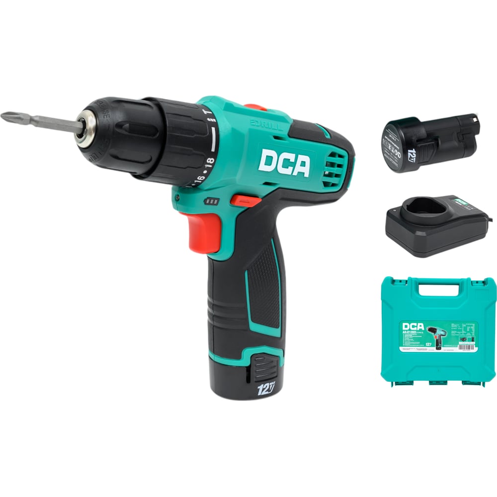 Аккумуляторная дрель-шуруповерт DCA 12 В, 2 АКБ 2 А*ч, в кейсе ADJZ1202i (TYPE E)