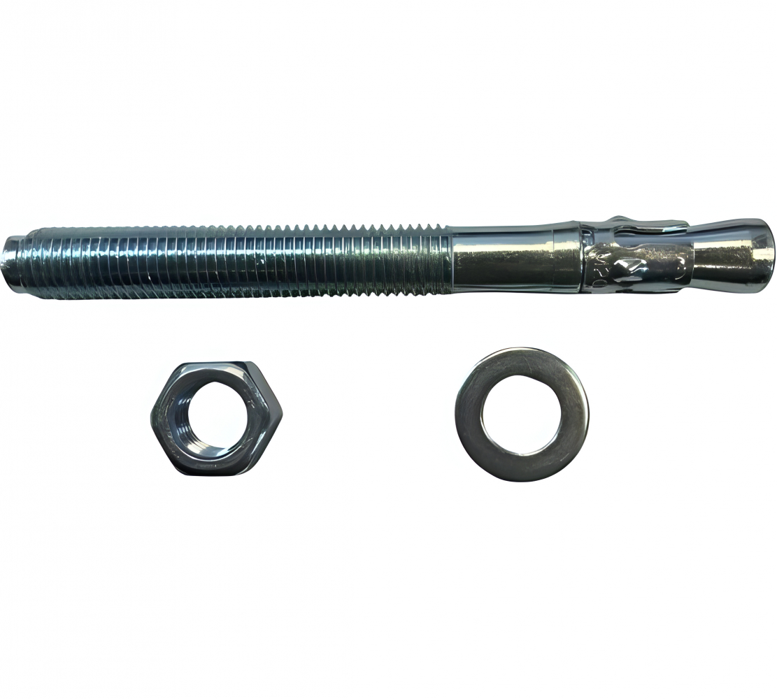 Great Wolf Анкер клиновой, белый цинк. М20x200мм. Предназначен для сквозного монтажа тяжеловесных конструкций– отбойников, лифтов и подъёмников, колонн и опор к основанию из бетона, природного камня или полнотелого кирпича.