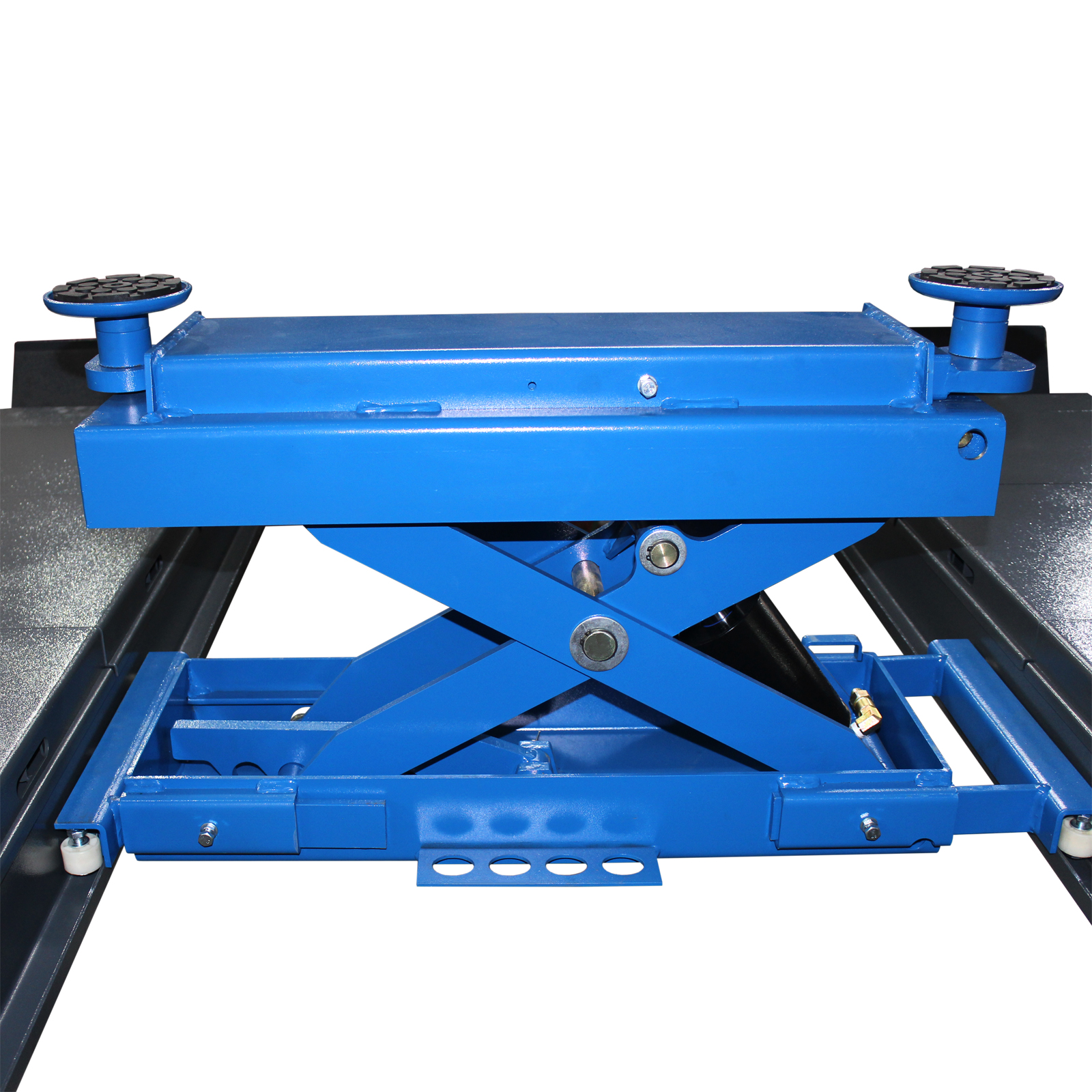 Автомобильный подъемник F4.5D-4 для сход-развала обладает хорошей устойчивостью за счет четырех опор и простым надежным механизмом.