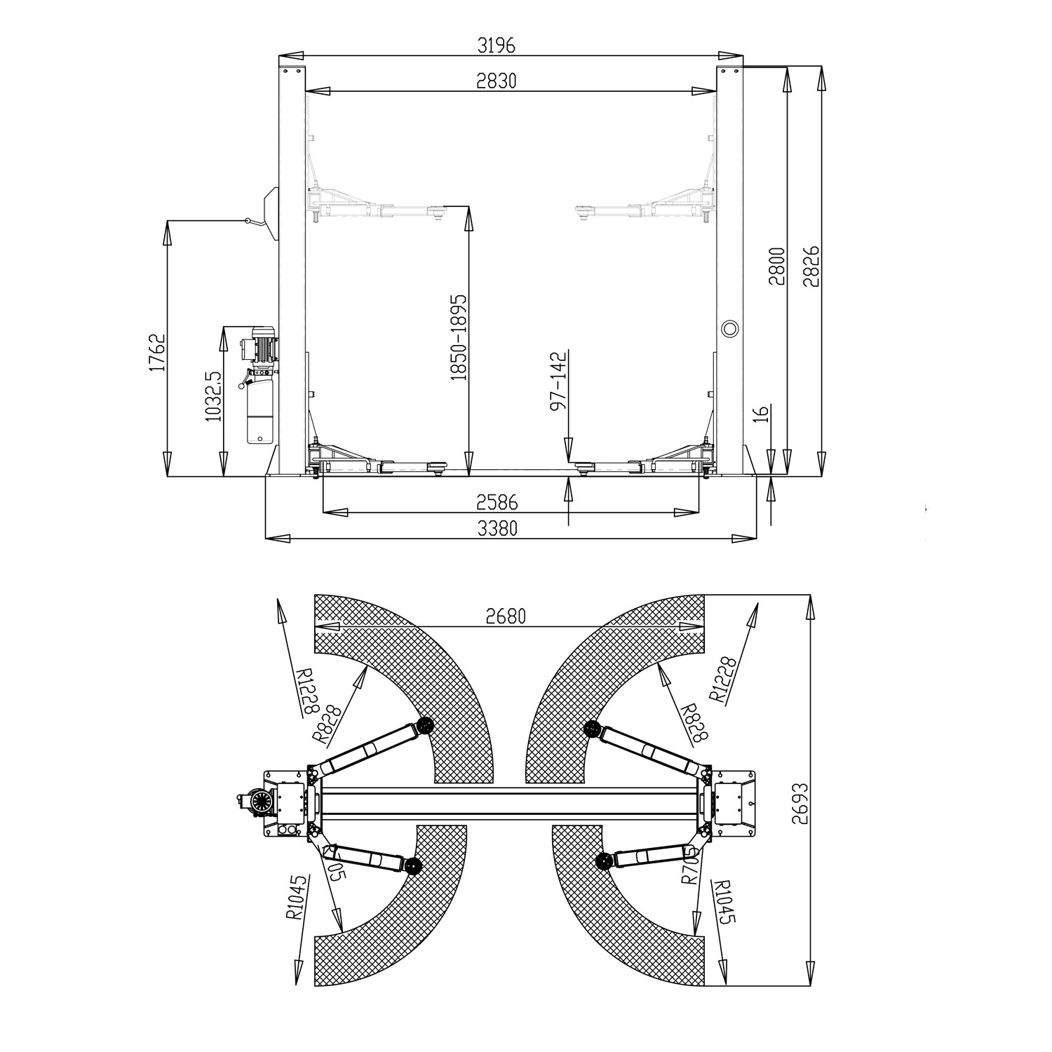 ВНИМАНИЕ!!! В комплекте подъемника НЕТ удлинителей для рамных автомобилей и анкерных болтов. Можно приобрести отдельно