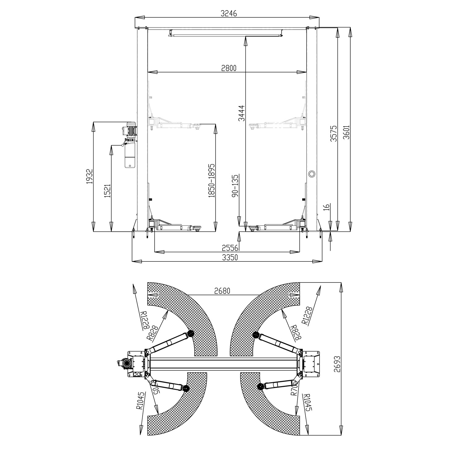 Автоподъемник двухстоечный ROSSVIK V2-4L г/п 4.0т, 220В, с верхней синхронизацией. Цвет серый