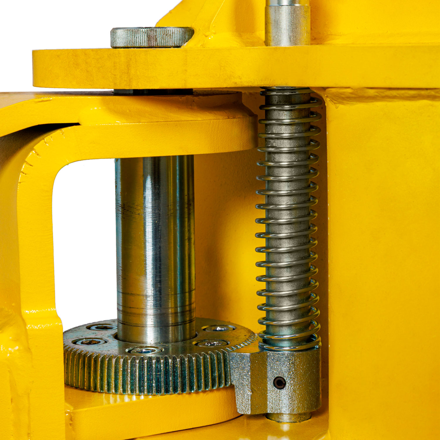 Съем со стопоров - рукояткой с главной колоны + дублирующие петли на каждой каретке.