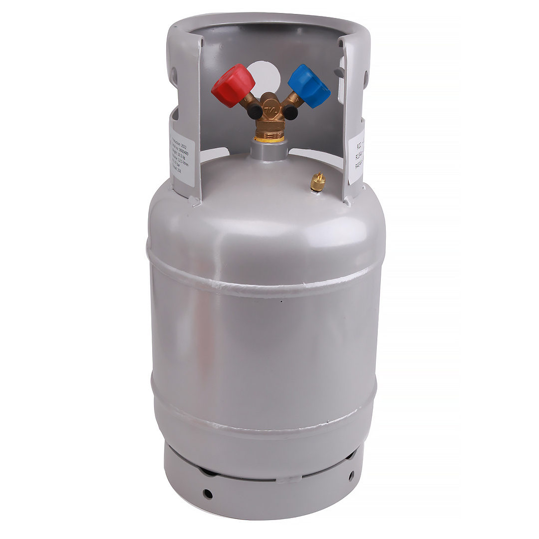 Двухвентильный баллон для сбора фреона, имеет объем 12,5 л. Используется для сбора фреона разных типов, многоразовый. Вес пустого баллона 8,95 кг. Рабочее давление до 35 бар. Оснащен клапаном Шредера и двухвентильным коллектором: синий кран - паровая фаза, красный кран - жидкая фаза. Баллон изготовлен в полном соответствии с ТУ 3615-001-22219466-2013. Вместимость баллона в зависимости от типа фреона Тип хладагента Максимальная масса заправки r134a 12,6 кг r 22 12,4 кг r404a 9,84 кг r407c 11,4 кг r410a 10,3 кг r507a 10,2 кг Баллон для сбора фреона поставляется с паспортом сосуда работающего под давлением, что бодтверждает его качество.