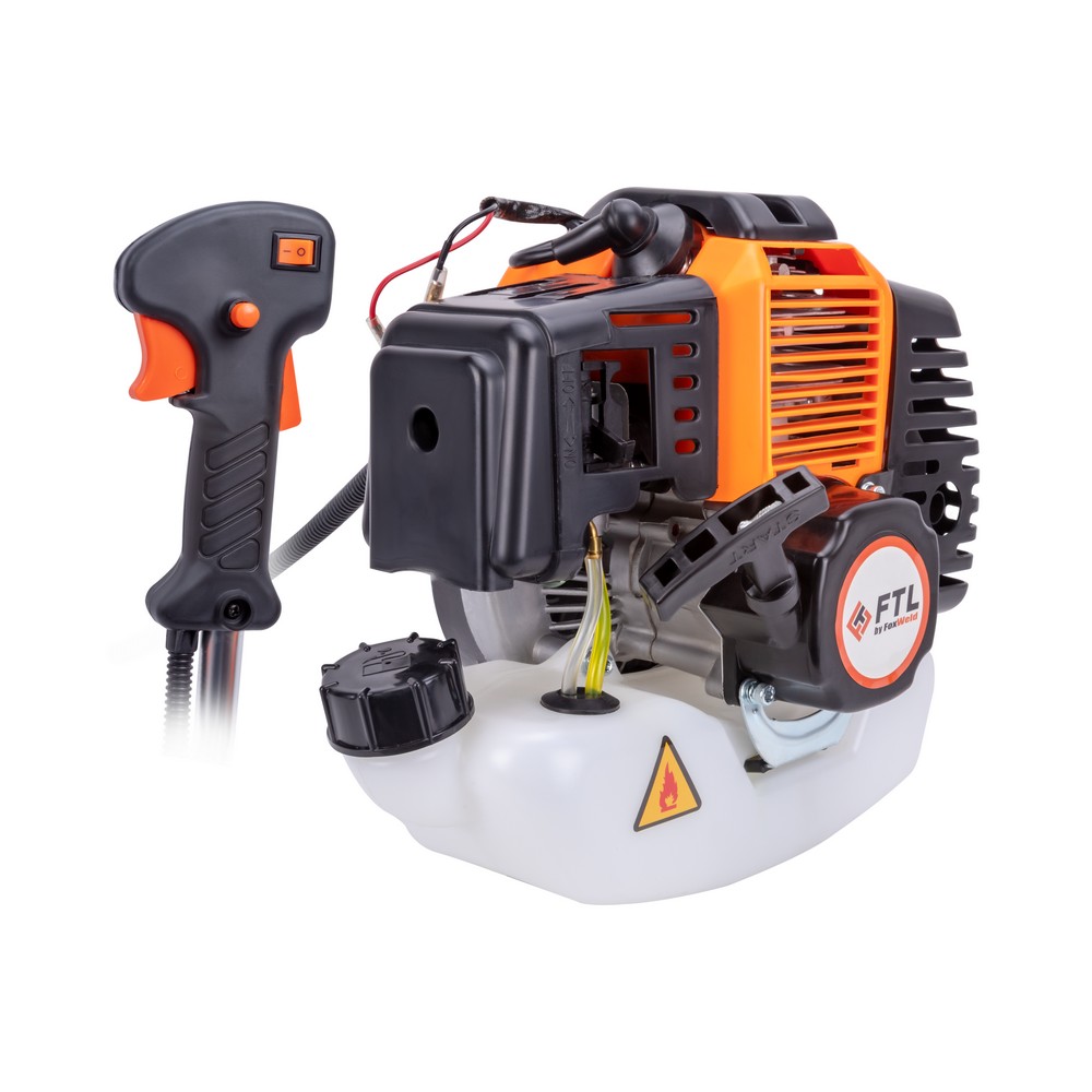 Двухтактный бензиновый двигатель объёмом 43 куб.см работает на смеси 92 безина и масла для 2Т двигателей (!)