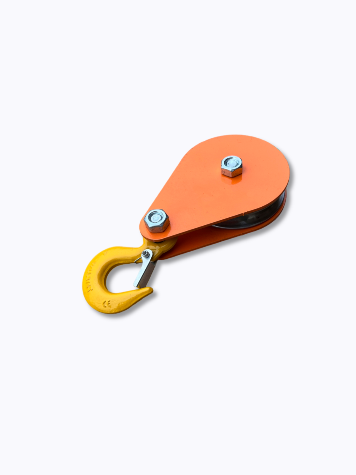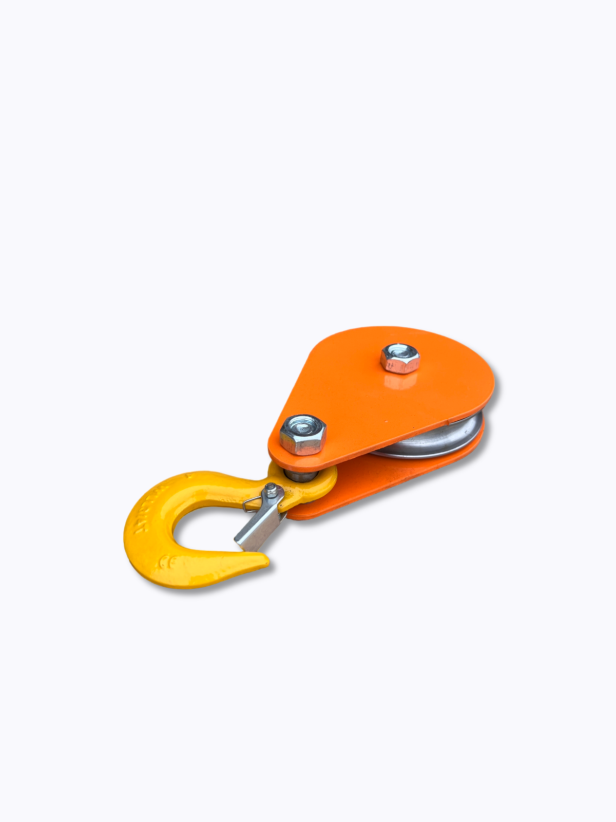 Блок монтажный с крюком БМКО ф100 с откидной щекой - предназначен для подъема грузов до 1000кг. Ролик с 2мя подшипниками ф100мм. Толщина стенок 3мм. Устанавливается крюк чалочный А320 - 1тн