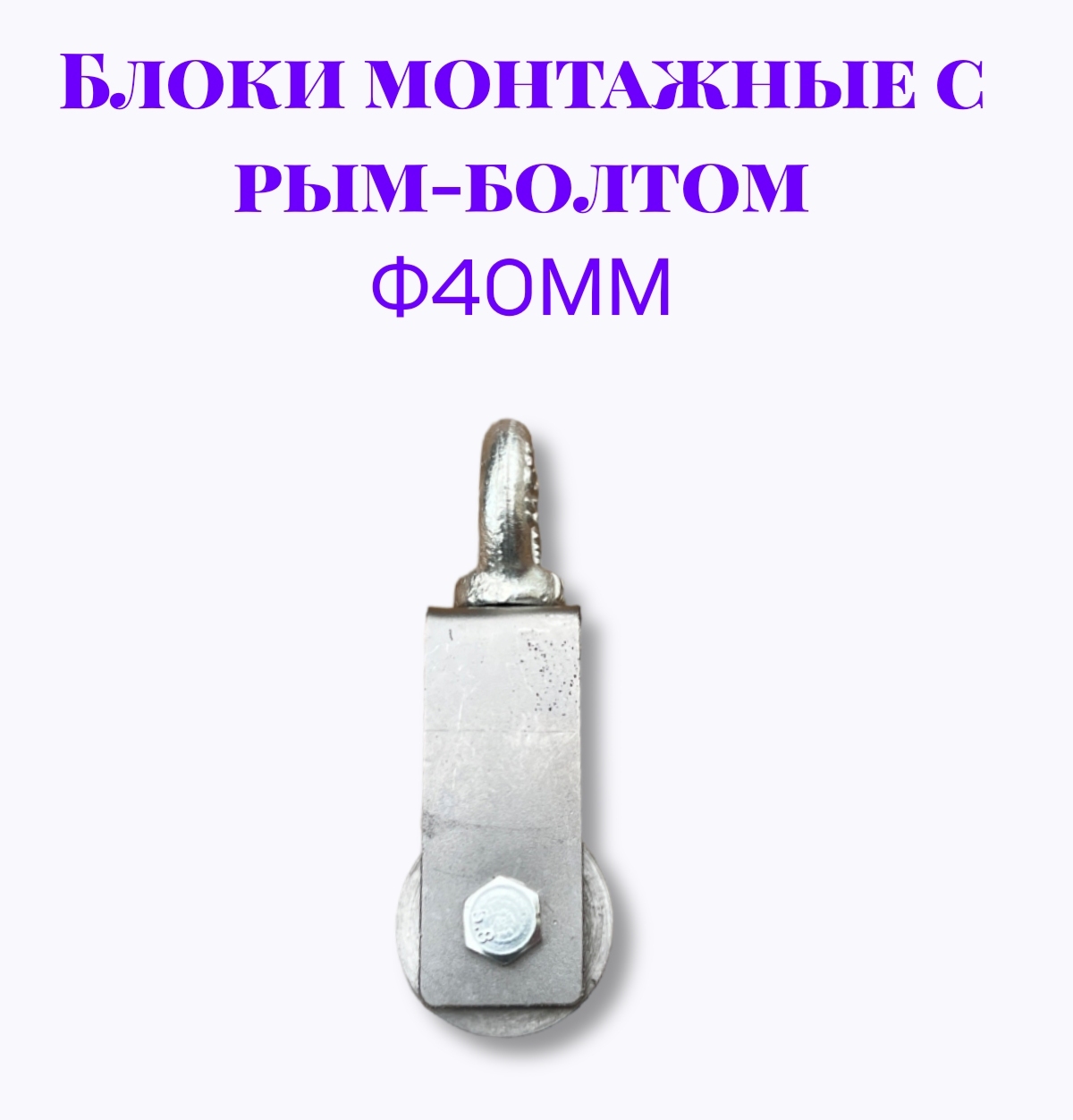 Блок монтажный с рым болтом, Предназначен для подъема грузов до 100кг. Ролик с подшипником ф40мм. Подшипник 608ZZ.