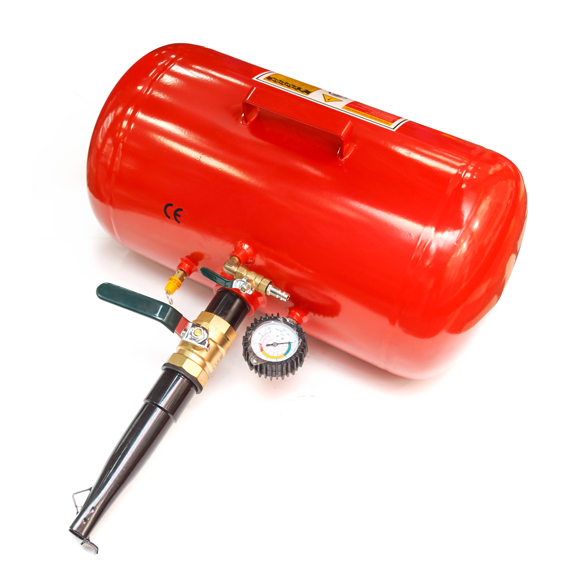 Назначение: Пневмопушка для взрывной накачки «Станкоимпорт» TRAD036 предназначена для быстрой подкачки и плотной посадки бескамерной резины на диск колеса на финальном этапе шиномонтажных работ. Используется на шиномонтажных постах, станциях технического обслуживания автомобилей. Описание: Взрывная пневмопушка «Станкоимпорт» TRAD036, 38 л. (бустер) — это компактное устройство с ресивером (баллоном), в который закачивают сжатый воздух при помощи компрессора. Бустер обслуживает колеса мотоциклов, легкового и грузового транспорта, малой сельскохозяйственной техники. Особенно актуально использование взрывной пневмопушки для новых и жестких низкопрофильных шин, резины RunFlat, а также деформированных в результате неправильного хранения покрышек. Чаще всего края таких шин прилегают к диску не плотно, и воздух выходит через образовавшиеся щели, что делает невозможной финальную накачку колес обычным пистолетом для подкачки. Пневмопушка имеет простой принцип работы. В ресивер закачивают воздух до максимально разрешенного производителем давления. Через сопло в шину подают воздух под высоким давлением, помогая тем самым резине принять первоначальную форму. Удобная конструкция позволяет мастеру эффективно управлять бустером, надежно удерживая его в руках. Для транспортировки на корпусе устройства предусмотрена ручка. Контроль давления воздуха в пневмопушке осуществляется встроенным манометром. Бустер не накачивает колесо полностью. После восстановления формы резины нужно завершить накачку компрессором. Особенности: Предохранительный клапан, ограничивающий давление Советы по эксплуатации Пневмопушку взрывной накачки «Станкоимпорт» TRAD036 транспортируют в оригинальной картонной коробке. Распаковав бустер, убедитесь в наличии всех деталей, согласно комплекту поставки. При отсутствии или поломке какой-либо детали немедленно свяжитесь с продавцом. Чтобы убедиться, что устройство готово к работе, совершите пробный запуск до начала эксплуатации, направляя сопло от себя. Безопасное рабочее давление ресивера – 8 бар, максимальное – 10 бар. Накачка шин: пошаговая инструкция Перед взрывной накачкой борт шины с внутренней стороны должен быть уже посажен на диск. Борт шины и обод диска с внешней стороны должны быть тщательно смазаны монтажной пастой. Расположите пневмопушку так, чтобы выпускное сопло было параллельно полу, а спусковой клапан находился сверху. Положите шину внутренней стороной колеса вниз, вентиль колеса при этом должен быть направлен вверх. Надежно зафиксируйте его при помощи опоры-треноги и клина. Направьте сопло между ободом диска и бортом шины с противоположной вентилю стороны под углом 30°-45°. Сопло не должно плотно контактировать с диском — отведите его на расстояние примерно 2,5-5 см. Плавно нажмите на спусковой клапан, направляя поток воздуха в зазор между шиной и диском. Если шина села на диск не плотно, повторите процедуру при большем давлении воздуха. После...