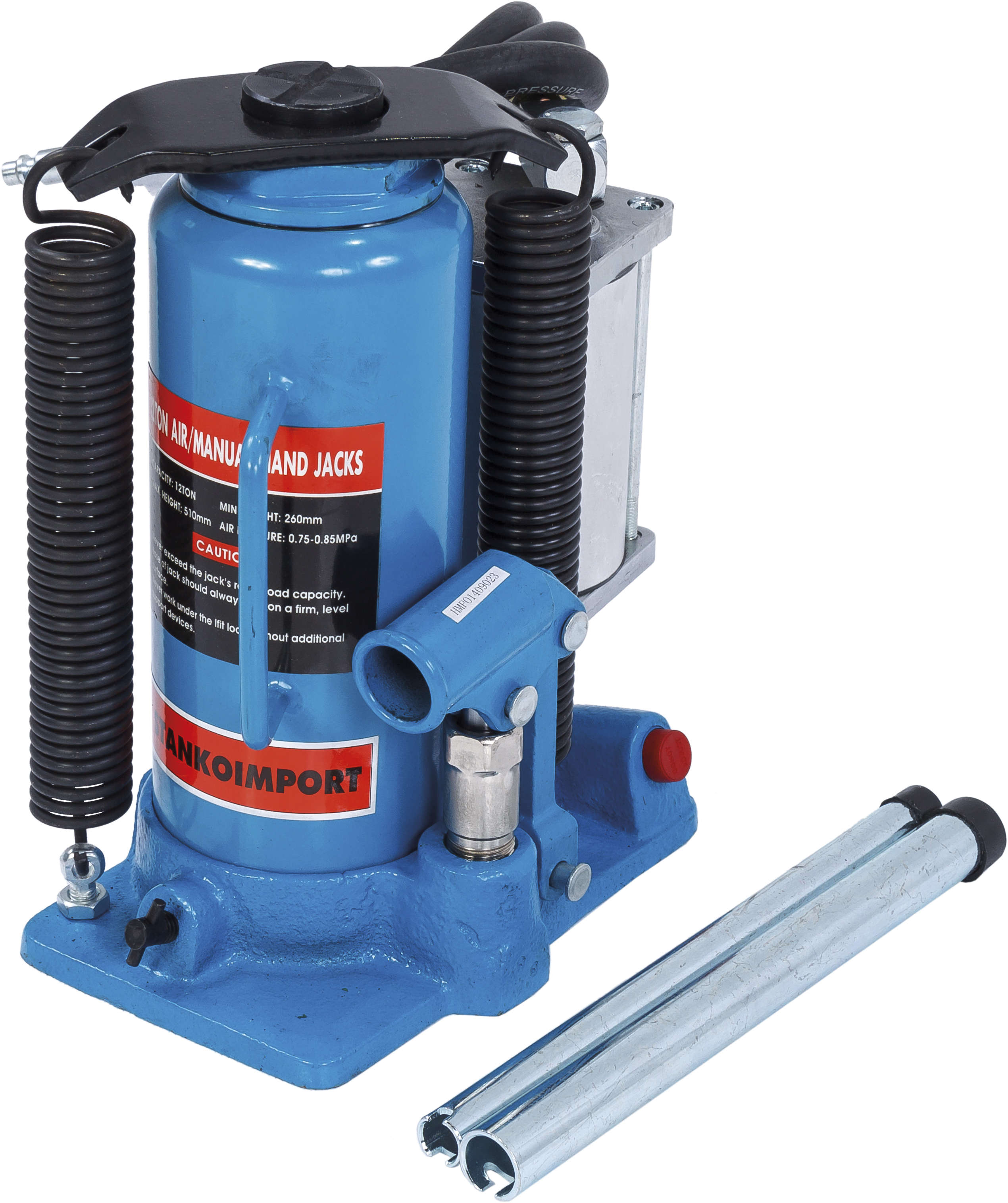 SD2001 бутылочный пневмо-гидравлический домкрат на 12 тонн Преимущества: • Отличная устойчивость за счет площади опоры • В комплекте рукав высокого давления с разъемом для подключения к сети сжатого воздуха • Дополнительный ручной привод • Компактность • Для удобства переноски домкрат оснащен ручкой • Долговечная порошковая окраска Характеристики: Грузоподъемность: 12 тонн Минимальная высота подхвата: 260 мм Максимальная высота подъема: 510 мм Требуемое давление воздуха: 0,75-0,85 МПа Бренд: СТАНКОИМПОРТ Цвет: синий Вес: 23,5 кг Гарантия: 1 год Упаковочные размеры: 1 место: 250х190х270 мм (картонная коробка)