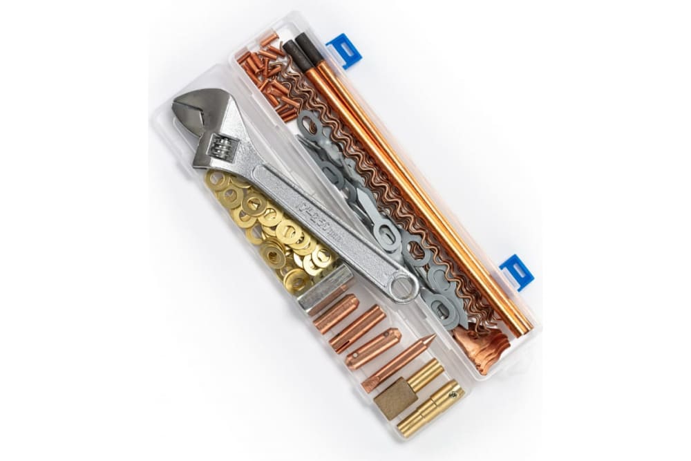 Споттер укомплектован всеми необходимыми аксессуарами и расходниками. Получив аппарат, вы сразу можете приступать к работе: односторонняя сварка, ремонт круглой шайбой, ремонт треугольной шайбой, ремонт со стержнем из углеродистой стали, ремонт волнистой проволокой и др.