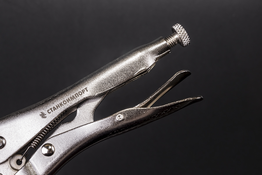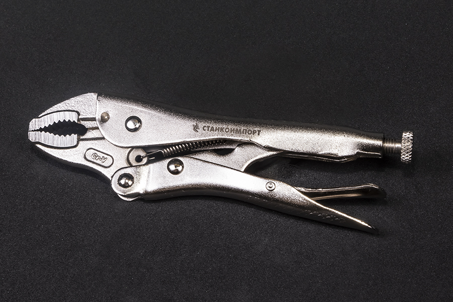 Описание Струбцина применяется при сварочных работах для поддержки и закрепления круглых деталей. Износостойкие захватные губки с крупной насечкой обеспечивают крепкий зажим. Инструмент имеет простую и удобную регулировку зева с помощью винта на рукоятке. Предусмотрен рычаг разблокировки для быстрого разжатия клещей. Конструкция рукоятки позволяет снять с руки значительную часть нагрузки при проведении работ. Это дает возможность работать одной рукой. Преимущества Надежная фиксация; Высокое давление опрессовки; Раствор губок для профиля: круглого до 40 мм, квадратного до 20 мм, шестигранного до 30 мм; Корпус из высокопрочной катаной стали выдерживает большие нагрузки; Режущие кромки для резки проволоки; Возможность работы одной рукой.