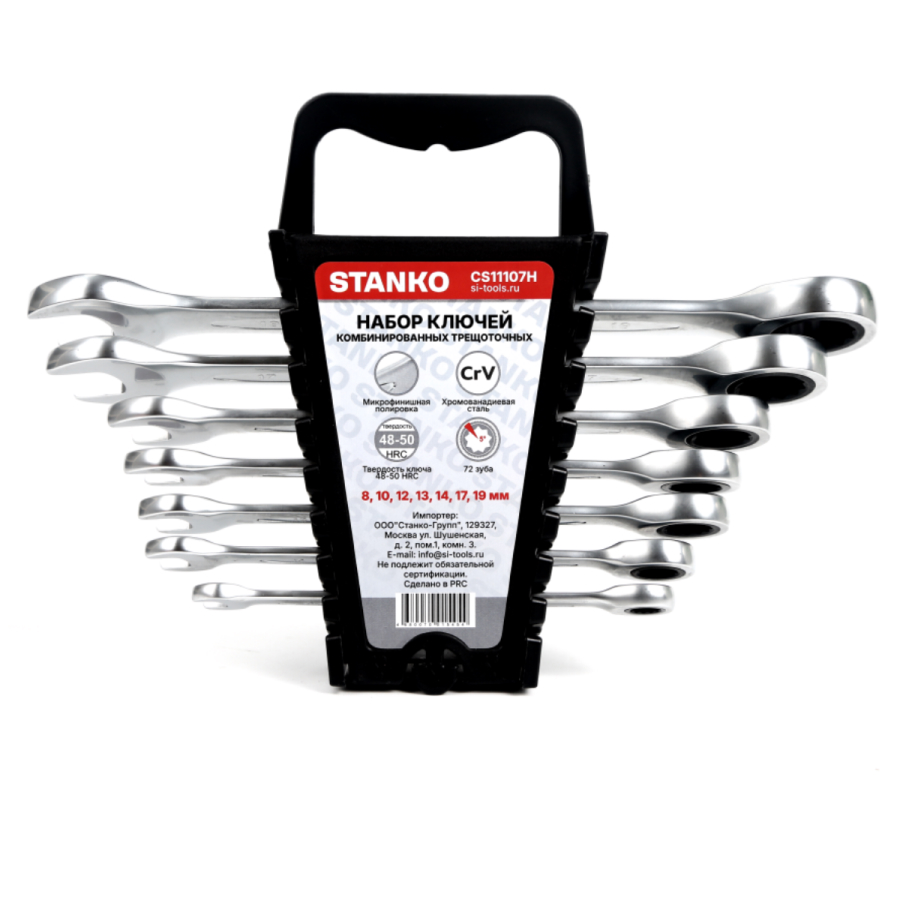 body{margin:0;padding:8px;} p{line-height:1.15;margin:0;white-space:pre-wrap;} ol,ul{margin-top:0;margin-bottom:0;} img{border:none;} li>p{display:inline;} Назначение Применяется при проведении слесарно-монтажных работ в производственной сфере, автосервисном деле и в быту. Особенности Данный тип ключа является максимально универсальным за счет наличия двух типов рабочих профилей, рожкового и накидного. Каждый из них имеет определенные преимущества. Рожковый – незаменим в тех случаях, когда доступ к крепежу ограничен, но из-за того, что имеет только две точки контакта с крепежом, не способен выдерживать большие крутящие моменты. Накидной – за счет наличия трещоточного механизма незаменим при работе в условиях ограниченного пространства. Механизм имеет 72 зуба, что обеспечивает шаг перехвата в 5 градусов, что существенно облегчает работу. Ключи изготовлены из высококачественной инструментальной стали марки 6140. Ключи располагаются на пластиковом держателе, для удобства переноски, держатель имеет складную ручку. Состав набора Комбинированные трещоточные ключи: 8 мм, 10 мм, 12 мм, 13 мм, 14 мм, 17 мм, 19 мм. Внимание Не применяйте накидной трещоточный профиль для срыва прикипевшего крепежа! Гарантия На инструмент торговой марки STANKO распространяется гарантия 12 месяцев.