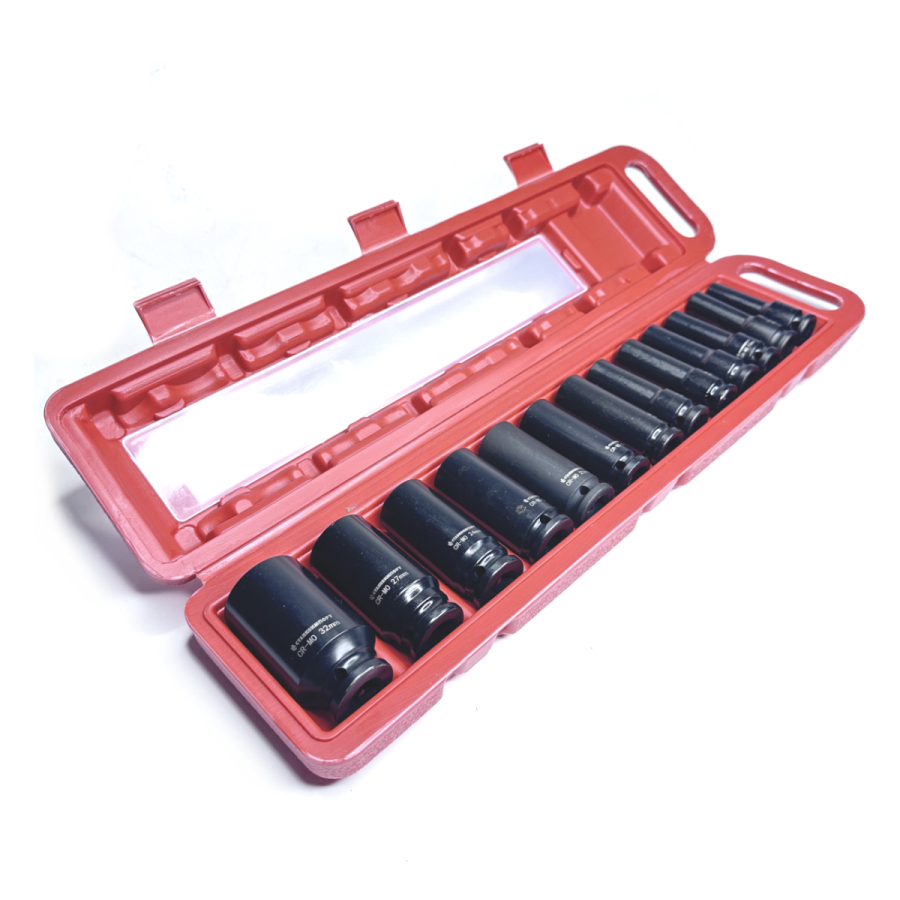 В набор входят ударные головки (глубокие) 10 мм, 11 мм, 12 мм, 13 мм, 14 мм, 15 мм, 17 мм, 19 мм, 21 мм, 22 мм, 24 мм, 27 мм, 32 мм.