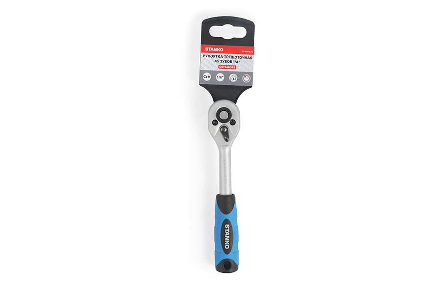 body{margin:0;padding:8px;} p{line-height:1.15;margin:0;white-space:pre-wrap;} ol,ul{margin-top:0;margin-bottom:0;} img{border:none;} li>p{display:inline;} Назначение Предназначена для использования с торцевыми головками, головками со вставками, битами (через адаптер). Трещотка с храповым механизмом значительно облегчает монтаж резьбовых соединений в ограниченном пространстве, где угол поворота ключа ограничен. Механизм трещотки имеет 45 зубов, что обеспечивает угол перестановки в 5 градусов, что в свою очередь повышает производительность труда, исключая необходимость снимать и надевать торцевую головку на крепеж после каждого поворота, как в случае с обычным воротком. Применение При обслуживании автомобилей и другой техники в домашних и автослесарных мастерских, на производствах или СТО. Особенности Трещотка изготовлена из высококачественной легированной хромованадиевой инструментальной стали, с последующей закалкой до твердости в пределах 46-48HRC, что обеспечивает оптимальное соотношение прочности и твердости. Эргономичная рукоять обеспечивает надежное удержание инструмента и комфортную работу, а благодаря высококачественным компонентам рукоять обладает высокой стойкостью к агрессивным средам. Качество Защиту от коррозии обеспечивает специальное хром-никелевое покрытие. Гарантия На ключи бренда STANKO распространяется гарантия 12 месяцев.