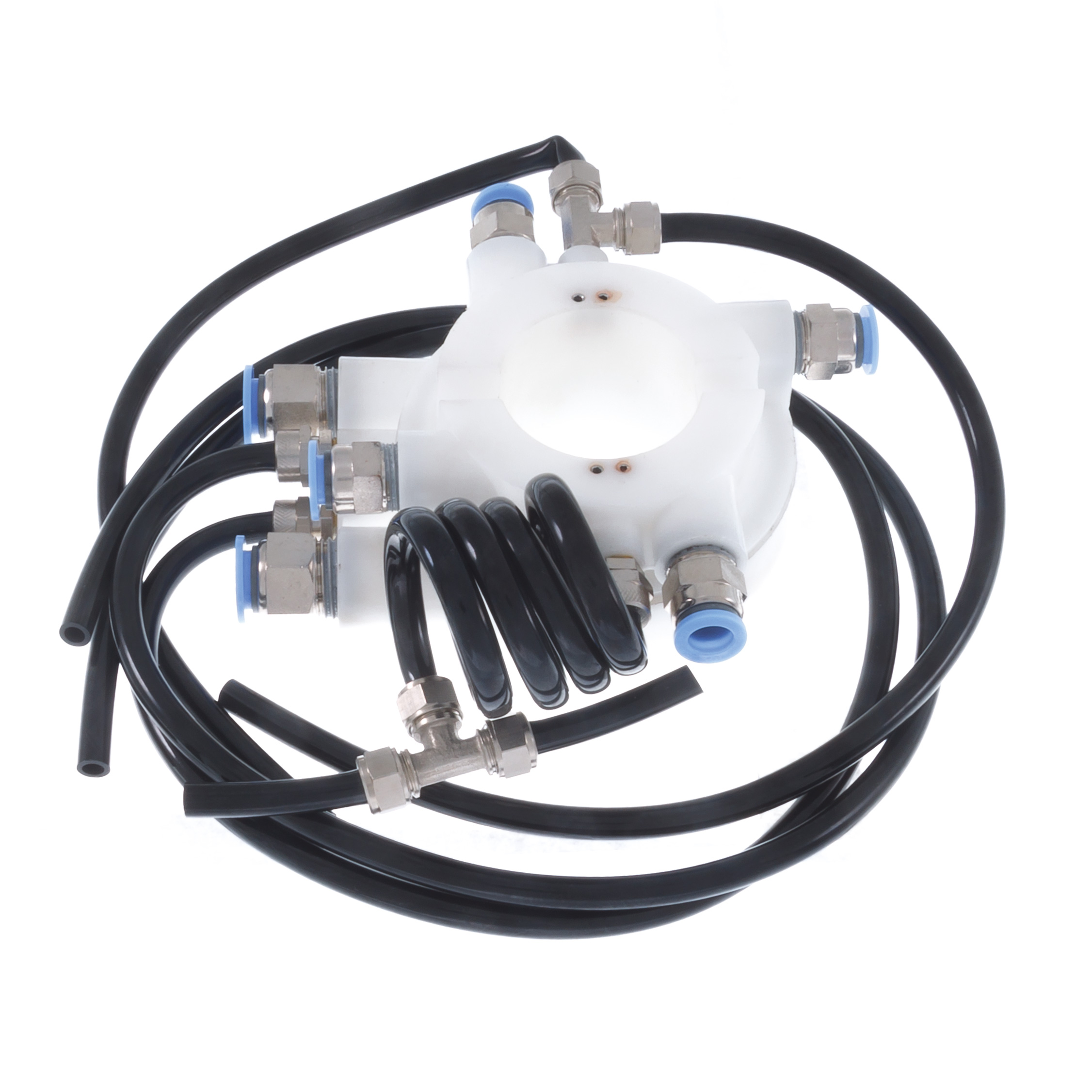 Поворотный распределитель в сборе. Устанавливается под поворотный стол, обеспечивает подачу сжатого воздуха к зажимным цилиндрам. В комплект входят все штуцера и трубки для подключения. Применяемость к моделям шиномонтажных станков: GT-305A GT-301A GT-203A