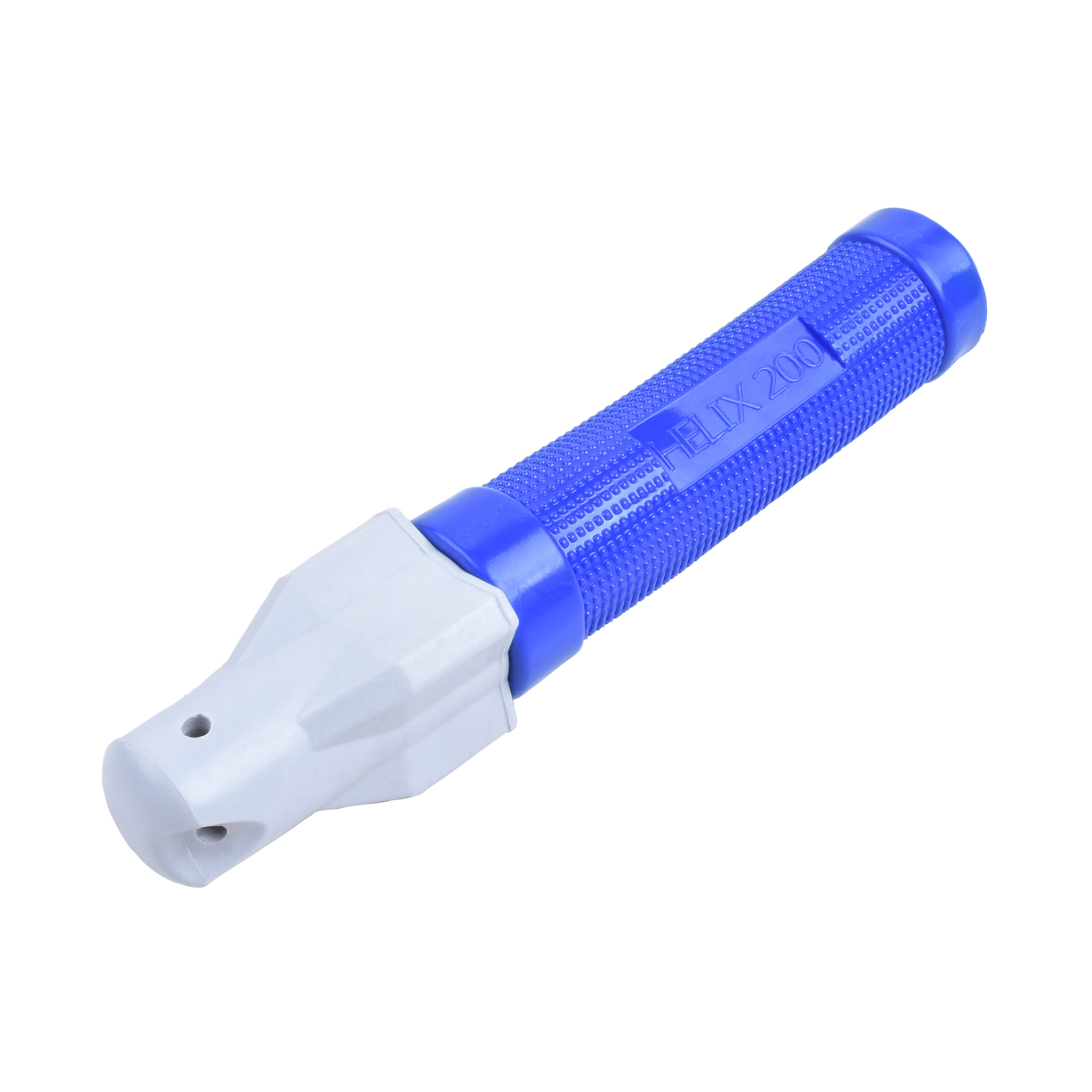 Предназначен для фиксации сварочного электрода. Максимальный сварочный ток до 200А при ручной дуговой сварке. Внутренний винтовой зажим (фиксатор электрода) изготовлена из латуни. Головка выполнена из керамики и имеет закрытый тип. Ручка выполнена из термоизоляционного материала.