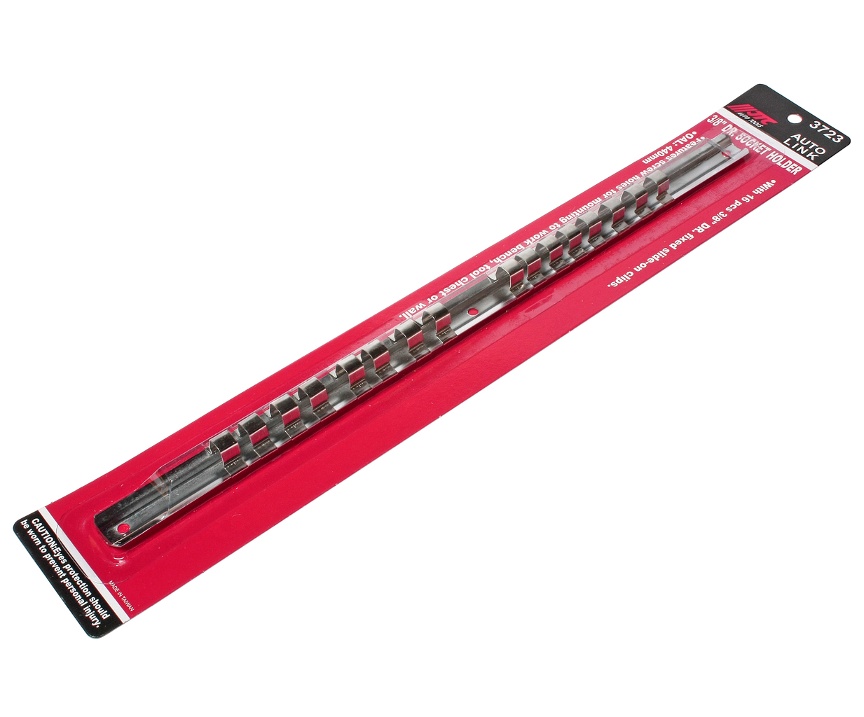 Планка для удержания головок квадратом присоединения 3/8" с возможностью крепления к стене или верстаку.