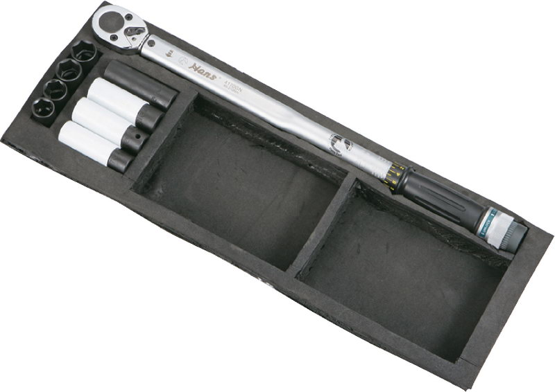 Динамометрический ключ и ударные головки 1/2" Hans в ложементе (9 предметов). 4170Nm – Ключ динамометрический 1/2" 40-210Nm 84304P – Головка ударная тонкостенная длинная для литых дисков 1/2": 17, 19, 21, 22 мм 84404M – Головка ударная тонкостенная 1/2": 17,19,21,22 мм Наполнить свою тележку