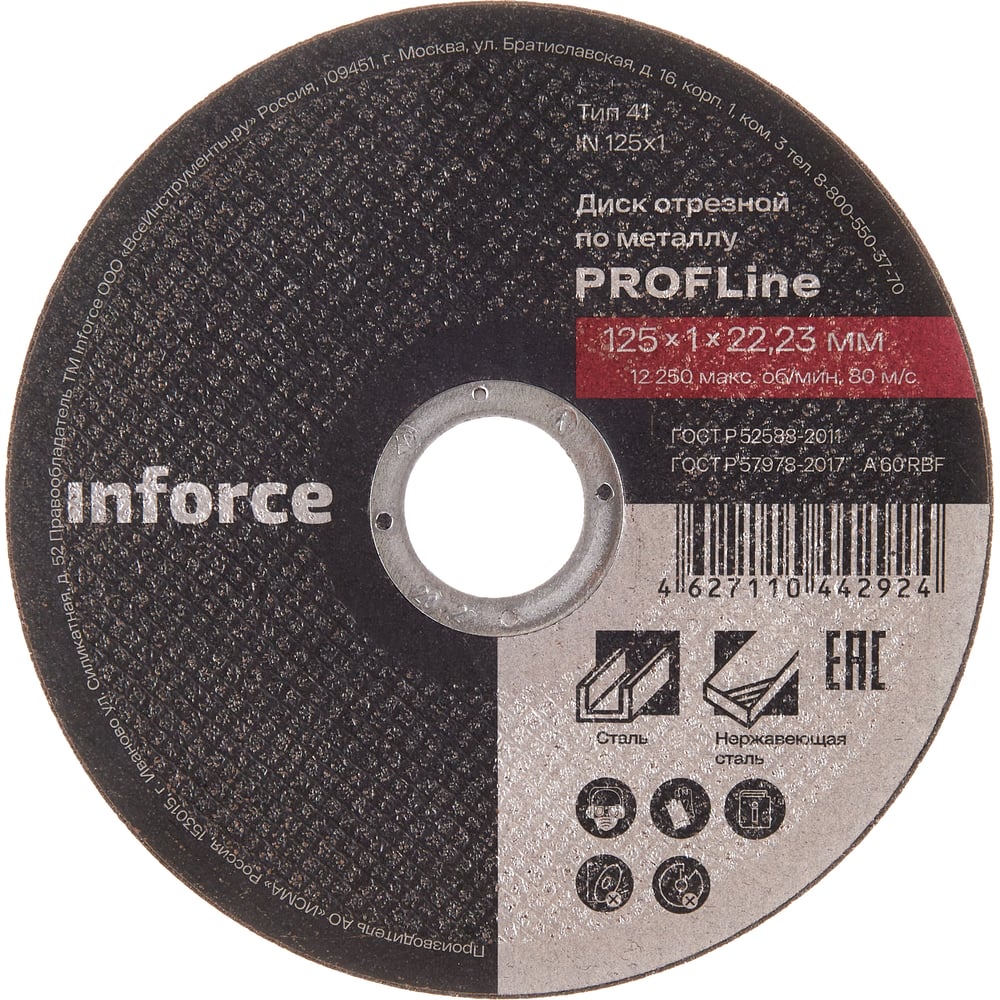 Диск отрезной по металлу (125х1.0х22.23 мм) Inforce IN125x1