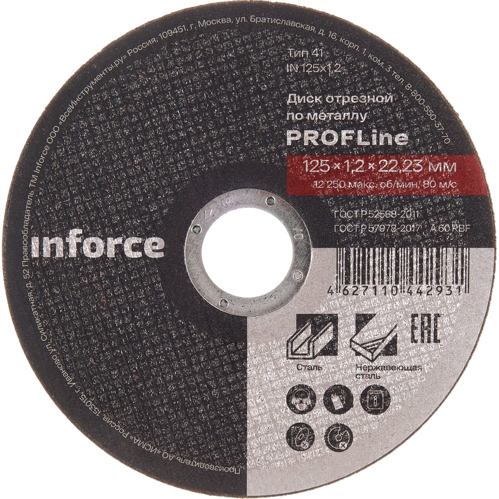 Диск отрезной по металлу (125х1.2х22.23 мм) Inforce IN125x1,2
