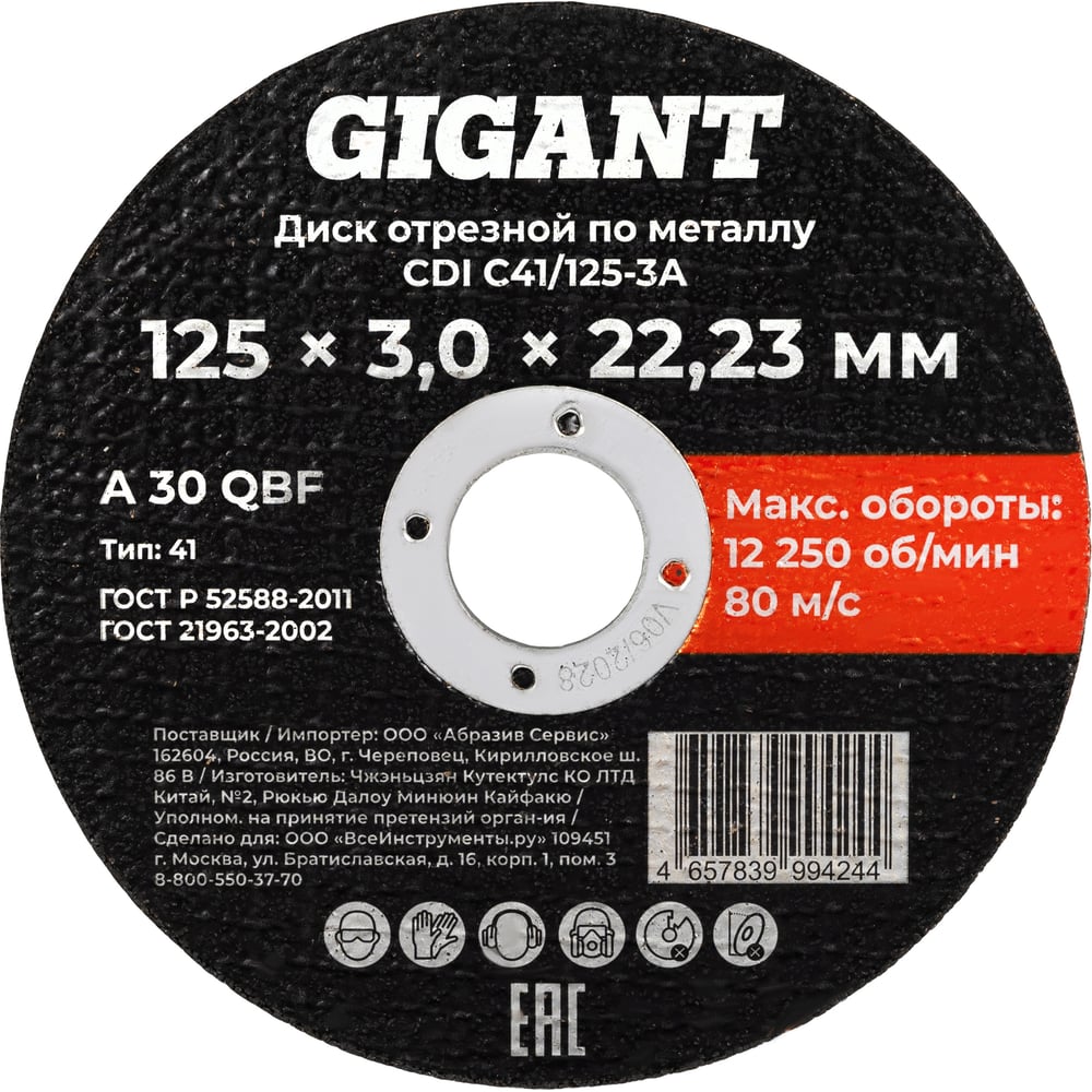 Диск отрезной по металлу 125x3x22 Gigant CDI C41/125-3A