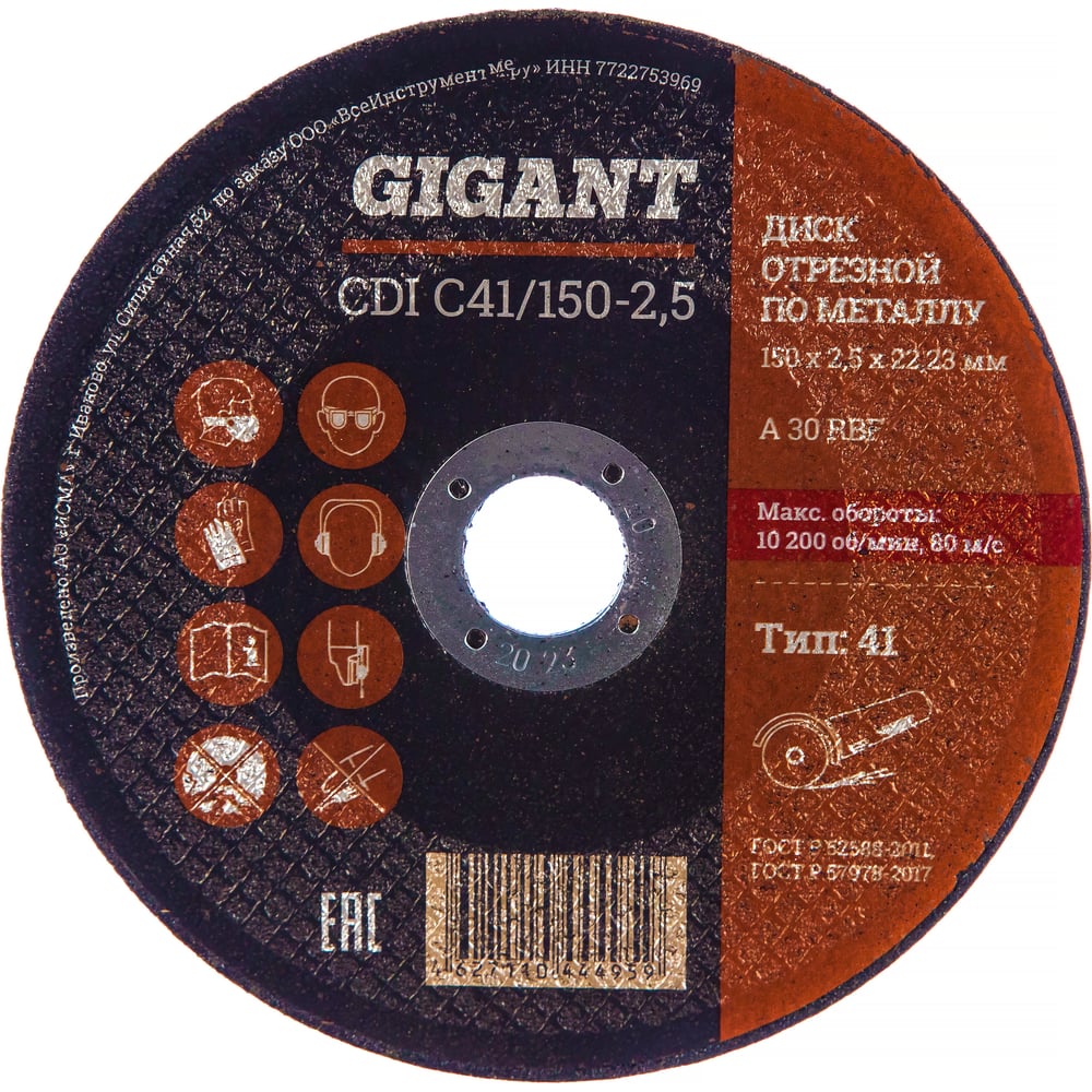 Диск отрезной по металлу (150х22х2.5 мм) Gigant СDI C41/150-2,5 (Россия)