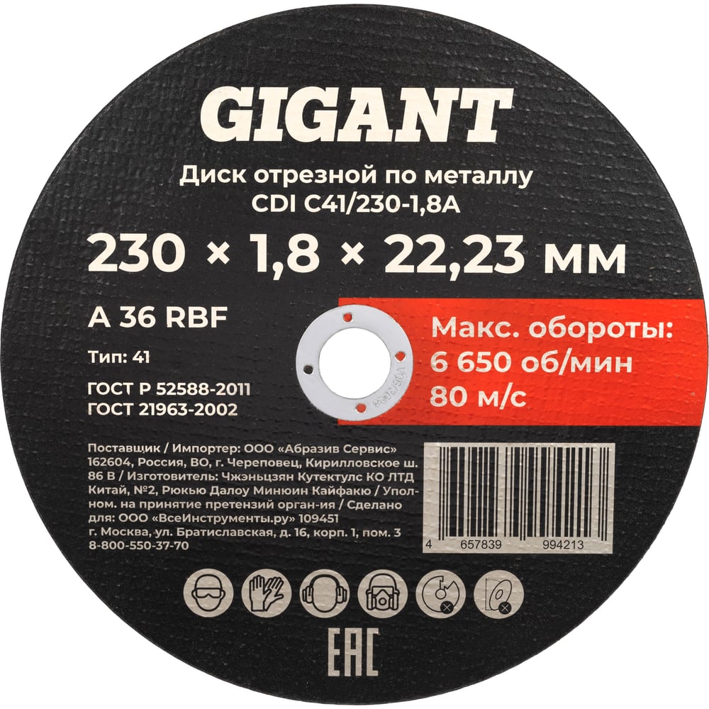 Диск отрезной по металлу 230x1,8x22 Gigant CDI C41/230-1,8A