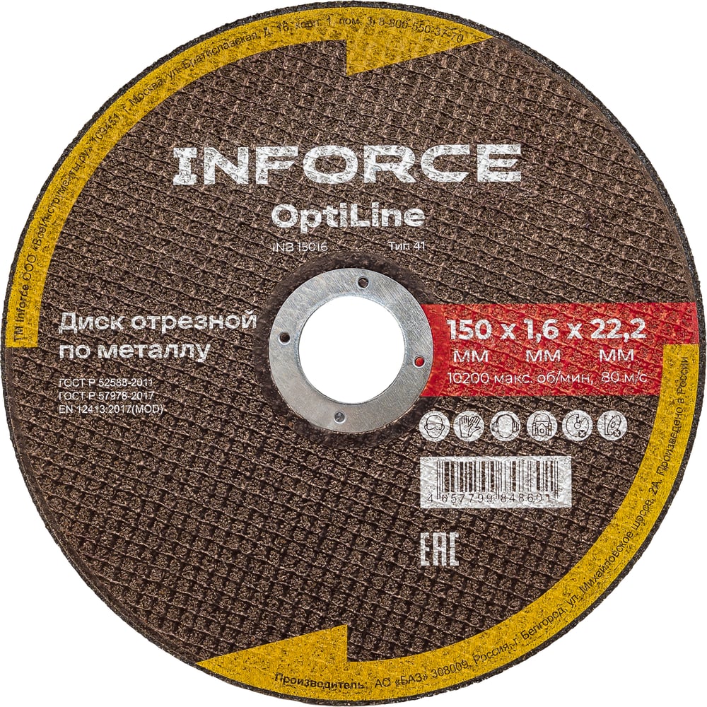 Диск отрезной по металлу OptiLine (150x1.6x22.2 мм) Inforce INB15016
