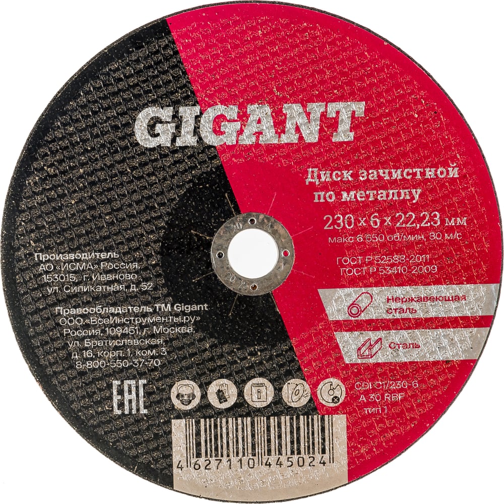 Диск шлифовальный по металлу (230х22.2х6 мм) Gigant СDI C1/230-6 (Россия)