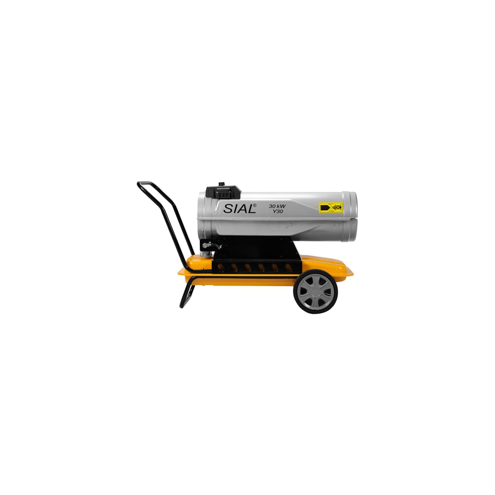 Тепловая установка SIAL Y30— это мобильный жидко топливный отопитель прямого нагрева с колесной базой и вмонтированным топливным баком на 25 литров горючего. С мощностью в 30 кВт, данная модель способна эффективно обогревать воздух, обеспечивая циркуляцию до 1000 куб. метров за час. Система подходит для прогрева площадей от 250 до 350 квадратных метров. Устройство оборудовано термостатом с цифровым показателем и ручной настройкой, что дает возможность автоматического поддержания заданной температуры и экономии топлива за счет рационального использования солярки. Электронный контрольный модуль, используемый в тепловых пушках, обеспечивает мониторинг за пламенем, автоматическое отключение горения в случае перегрева и регулирование начальных и конечных этапов работы устройства в зависимости от данных термостата.