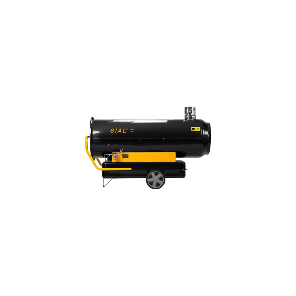 SIAL IY85 — мощная тепловая пушка непрямого нагрева со встроенным баком, работает на дизельном топливе и выдает мощность в 85 кВт, обеспечивая при этом прокачку воздуха до 4500 м³/ч. Электропитание потребляется лишь на вентиляцию и электронные компоненты, составляя всего 750 Вт, в то время как процесс теплогенерации устройства происходит за счет сгорания солярки. Норма расхода горючего на отметке 8.29 литра в час. Благодаря внушительному объему встроенного топливного бака в 100 литров, обогреватель может наработать до 12 часов, без необходимости заправляться. Конструкционная база тепловой пушки профессионального уровня для реализации промышленных задач прогрева воздуха. Она способна эффективно нагревать воздух и вывести продукты горения наружу через специальный канал патрубка дымоотвода. Благодаря ее высокой мощности, устройство может обогревать помещения около 700-900 кв. м.