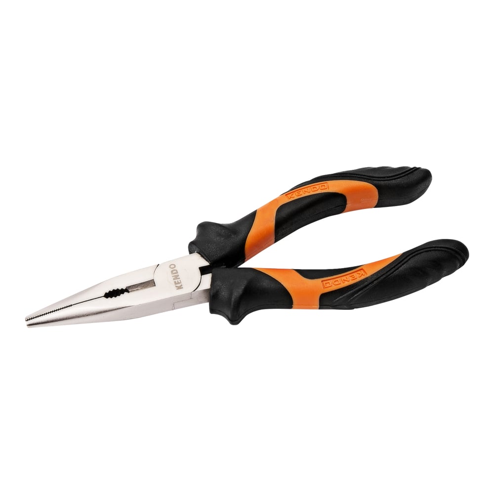 Длинногубцы KENDO 160 мм 10301 - ручной инструмент для удерживания небольших деталей, которым удобно работать в местах с ограниченным доступом. Рабочая часть изготовлена из высокоуглеродистой стали C55 с никелированным покрытием, поэтому имеет высокую прочность и не боится коррозии. Двухкомпонентные рукоятки из TPR делают работу более удобной, препятствуя выскальзыванию инструмента из рук.