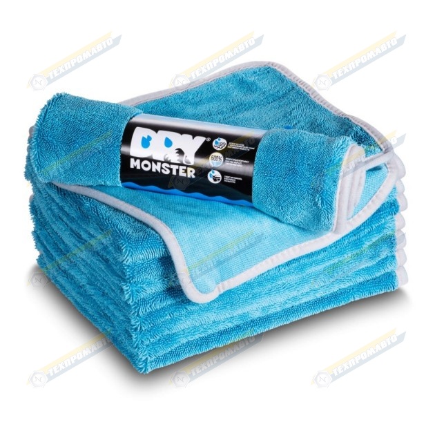 Полотенце для сушки автомобиля Dry Monster. Особое плетение с увеличенным объемом впитывания (до 600% от собственного веса). Размер 55x75см. Плотность 560гр/м.