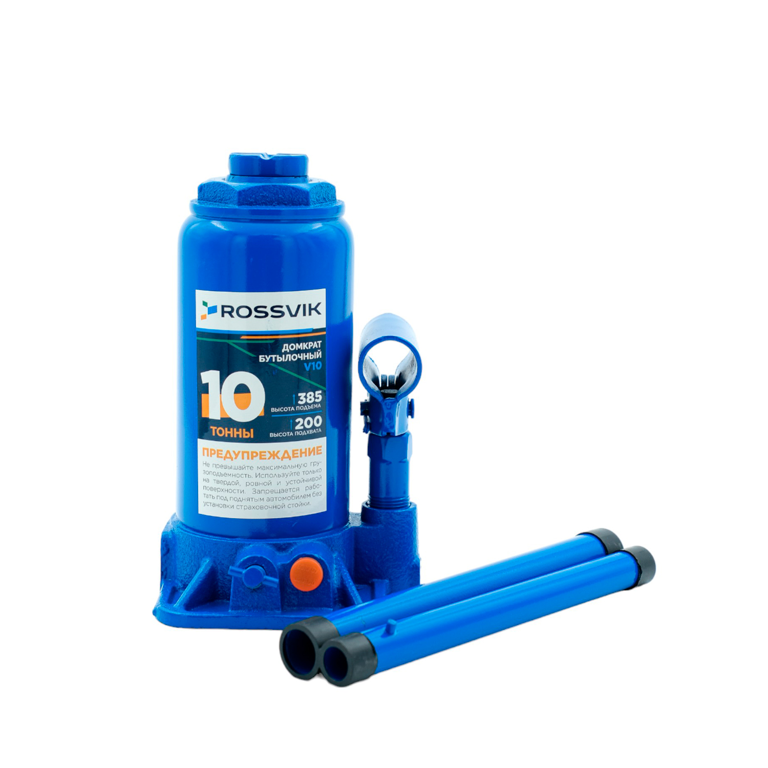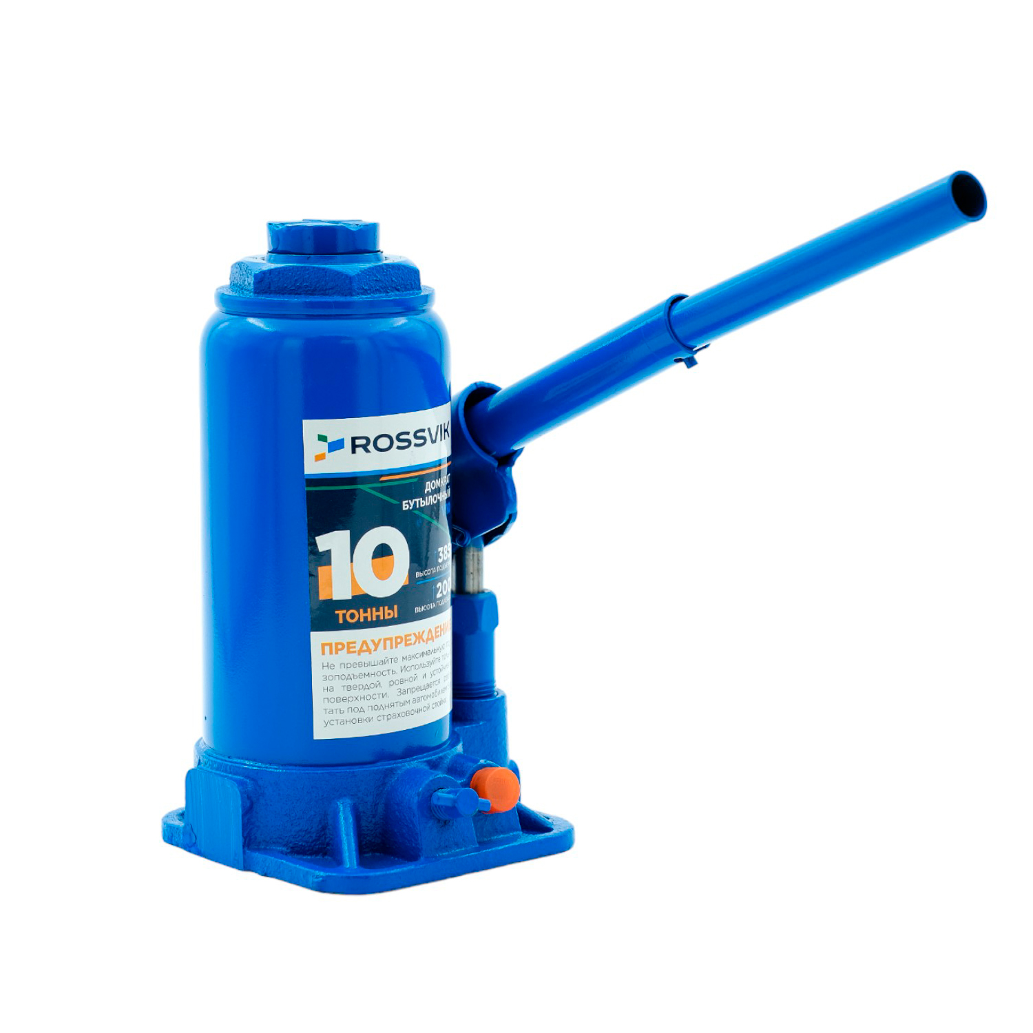 Домкрат бутылочный ROSSVIK V10, г/п 10,0 т, 200-385 мм, синий