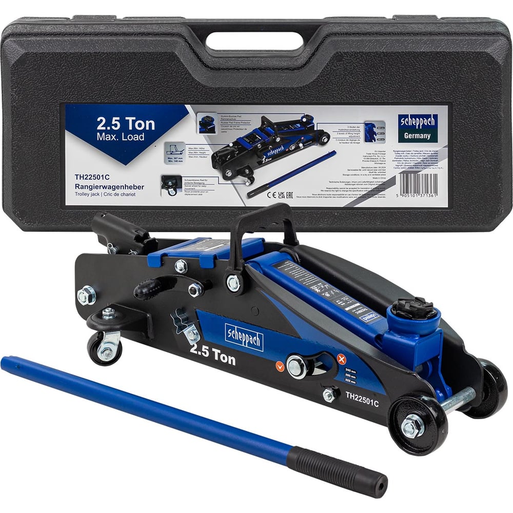 Домкрат подкатной гидравлический Scheppach 2.5т с фиксацией (h min 140мм, h max 387мм) в кейсе Sch-TH22501C(65257)