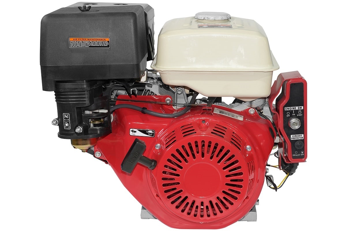 Фильтр воздушный, Бак топливный, Глушитель, Стартер ручной, Электростартер.