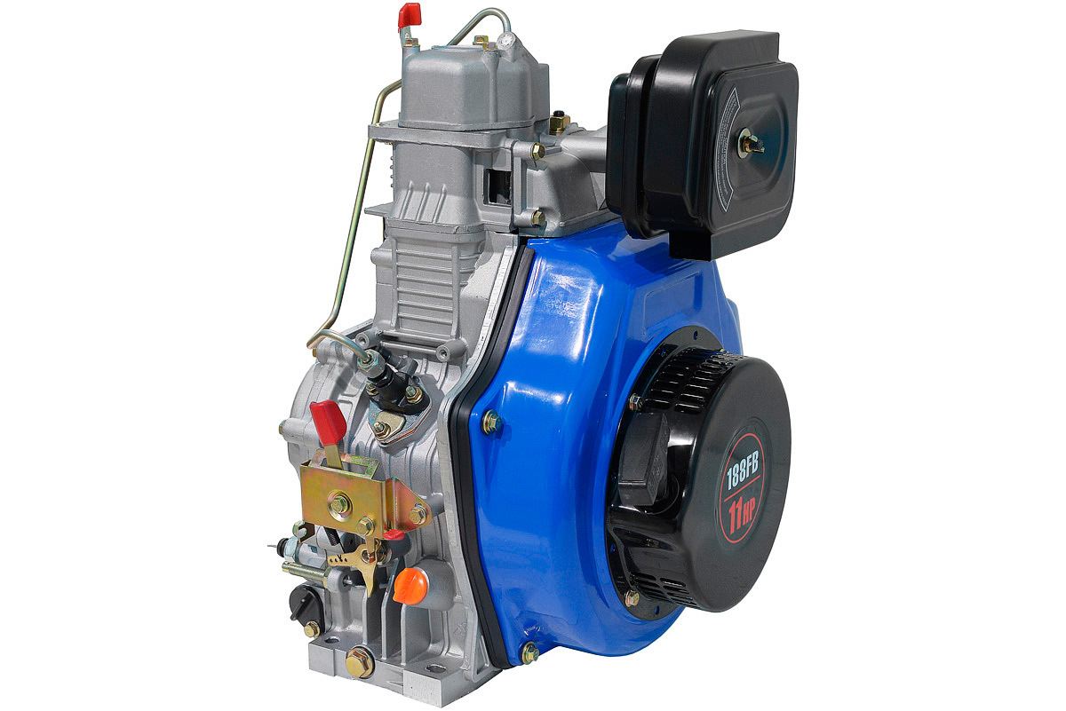 Двигатель дизельный, одноцилиндровый, с воздушным охлаждением. Вал конус (D-26 mm, L-75 mm), подходит для замены GESHT D188FAE, YANMAR L100N, Kipor KM186F, Lifan 188FD Diesel, Grost 186FАЕ-G. Изготовителем данных двигателей является завод Excalibur - крупнейший производитель сварочных генераторов, строительной техники и двигателей для малой механизации, которые поставляются в страны Азии, Европы, Африку и Америку.