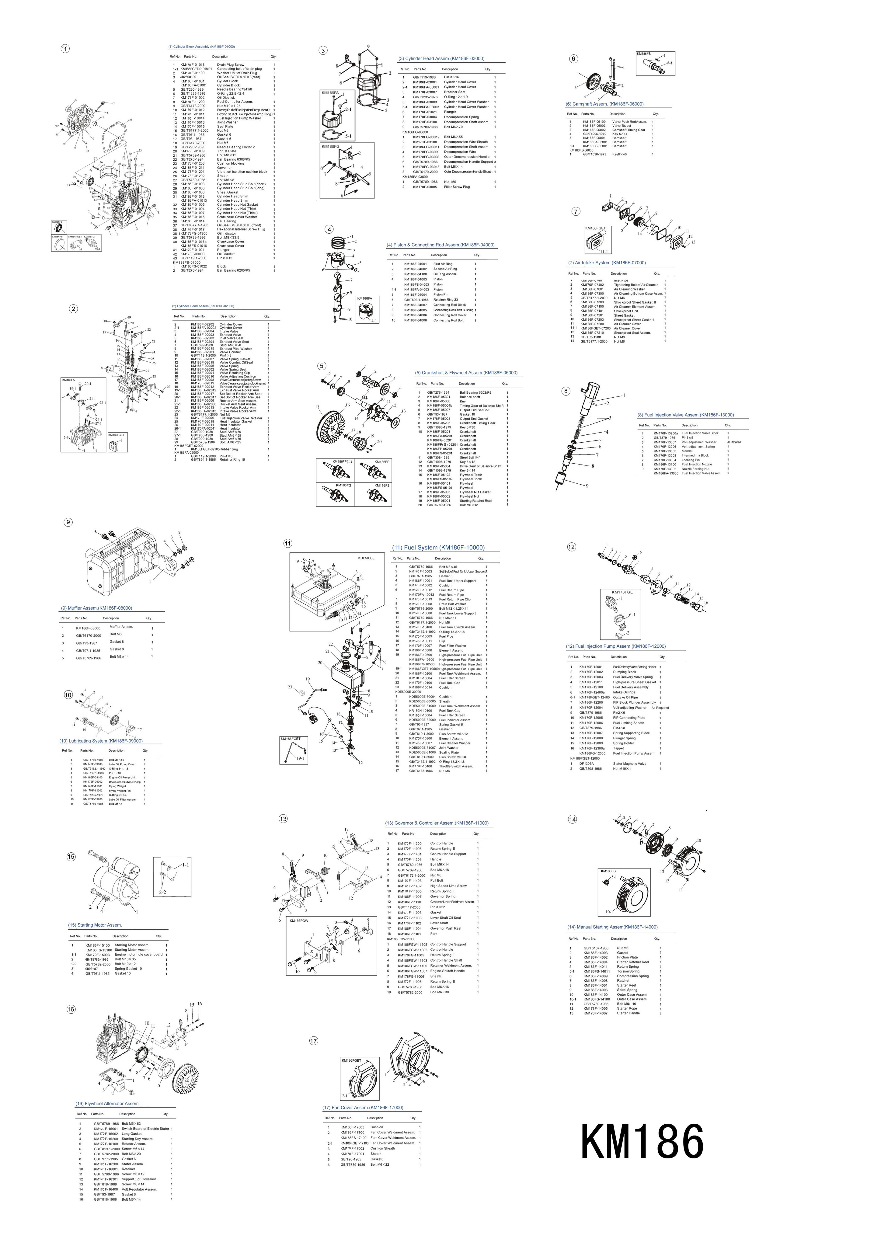 Двигатель дизельный KM186FA/E/Engine