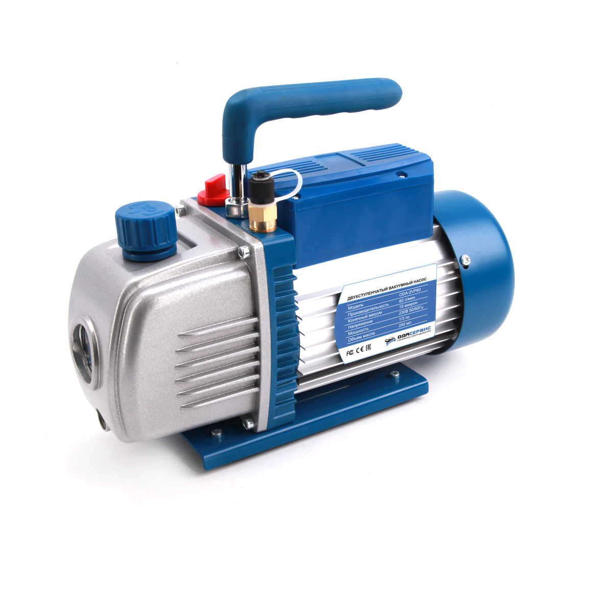 Двухступенчатая конструкция – позволяет достичь более глубокого вакуума и значительно сократить время вакуумирования, что делает процесс обслуживания систем более быстрым и эффективным.