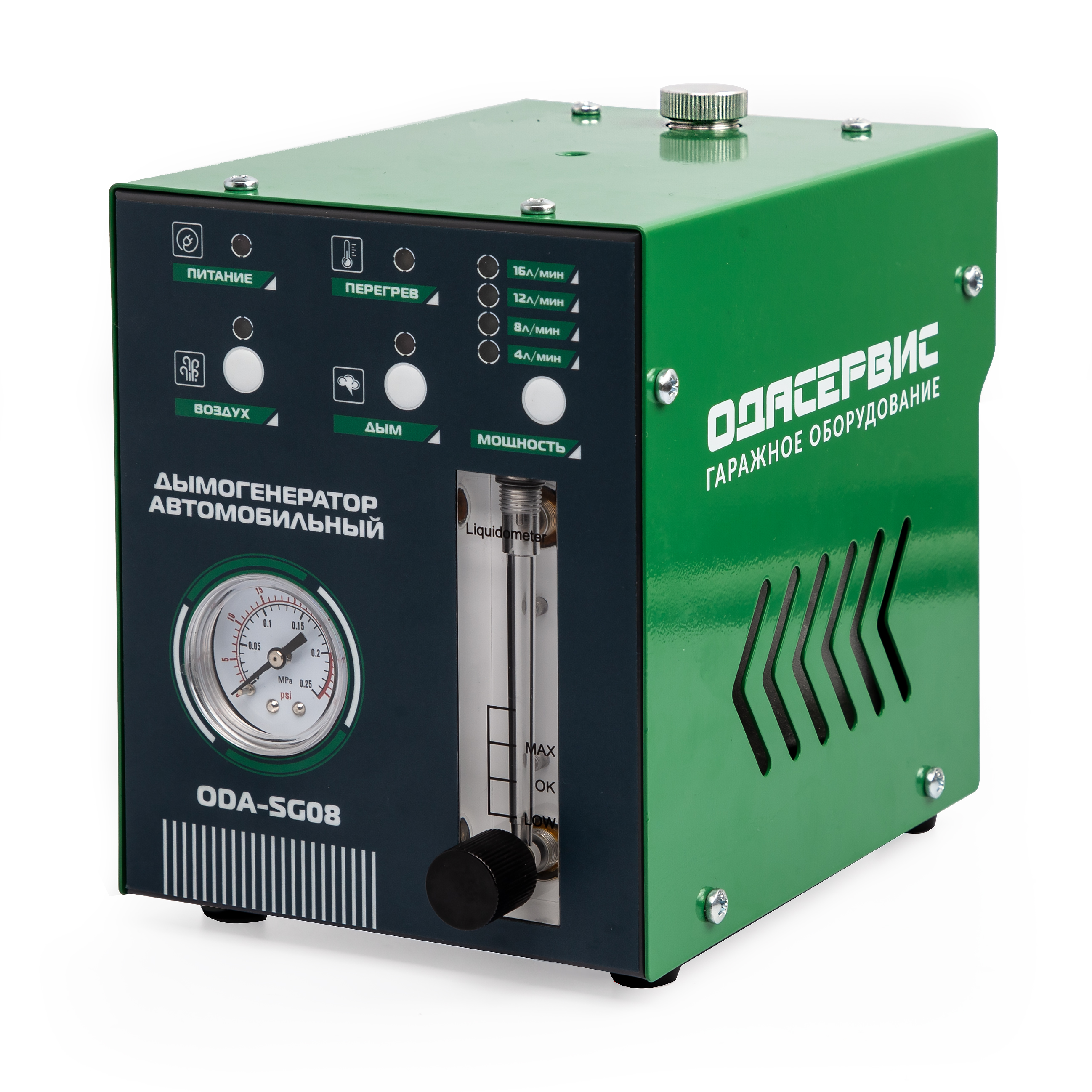 ODA-SG08 — это старшая модель линейки дымогенераторов ОДА Сервис для тех, кому нужна максимальная универсальность, повышенная производительность и современное электронное управление при диагностике утечек в автомобильных системах.